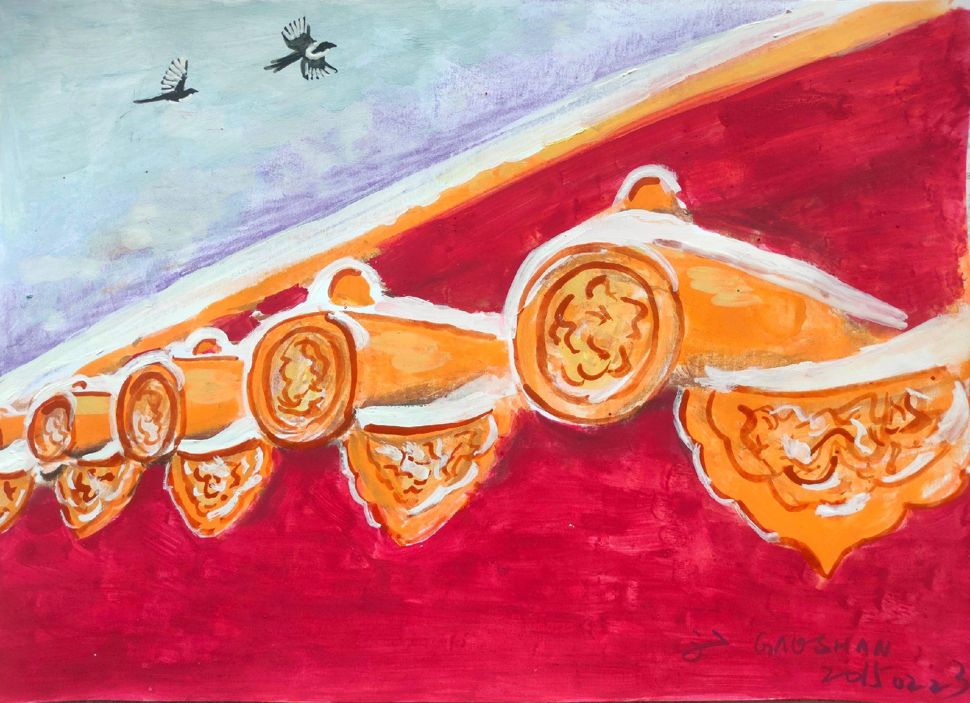 红墙白雪。朱墙金瓦覆霜痕,鹊掠晴空叩帝阍。六百宫墙风雪里,檐铃不语忆朝暾。紫禁城宫墙北京国风带你走进画里