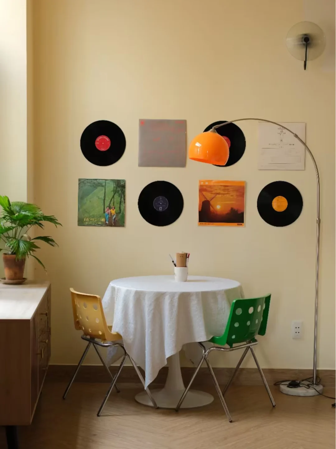 卧室的空间也很大,住两个人完全没问题,图片中展示的这间卧室墙壁上还挂满了黑胶唱片,很适合喜欢音乐的人,床品柔软舒适