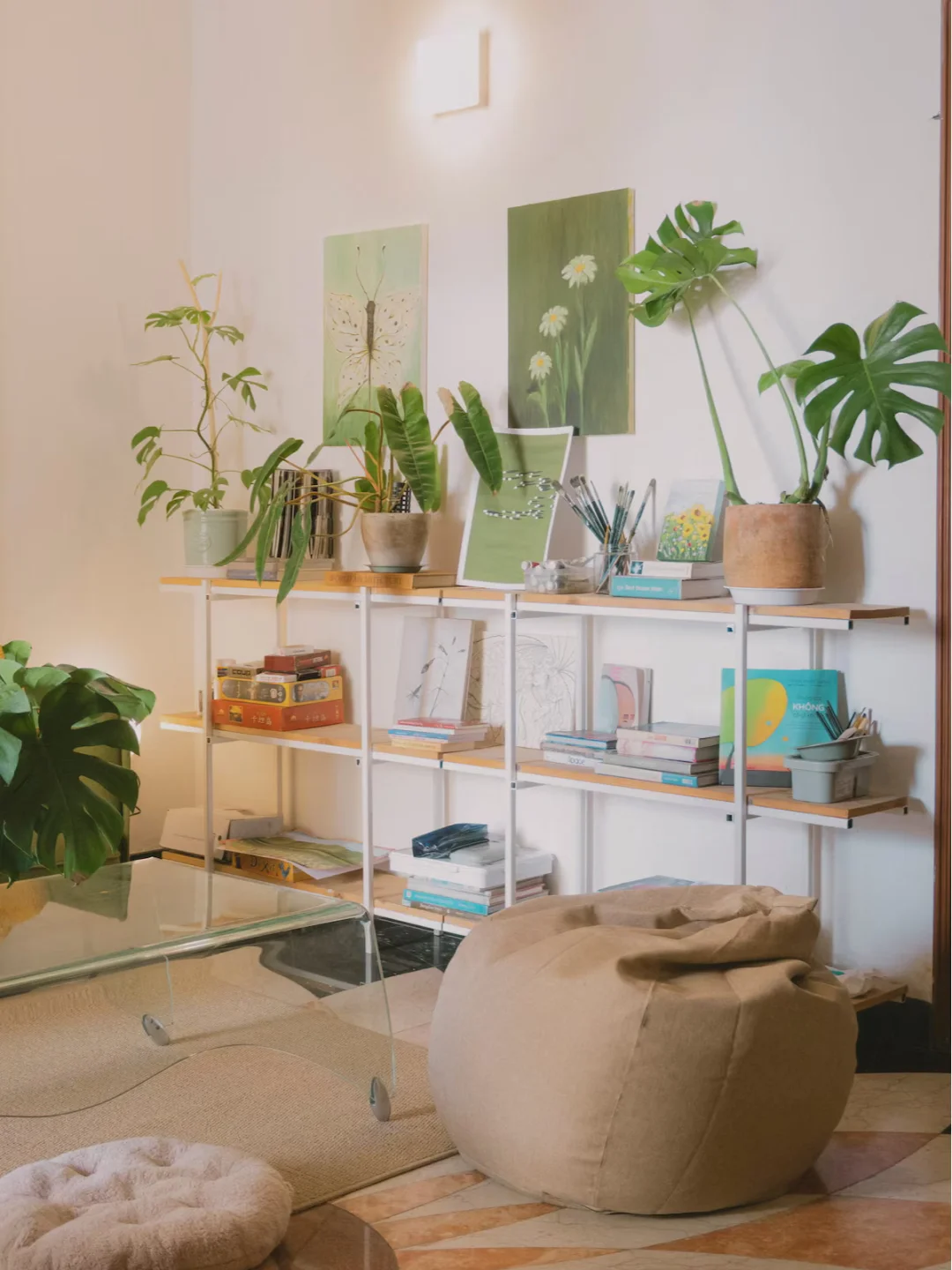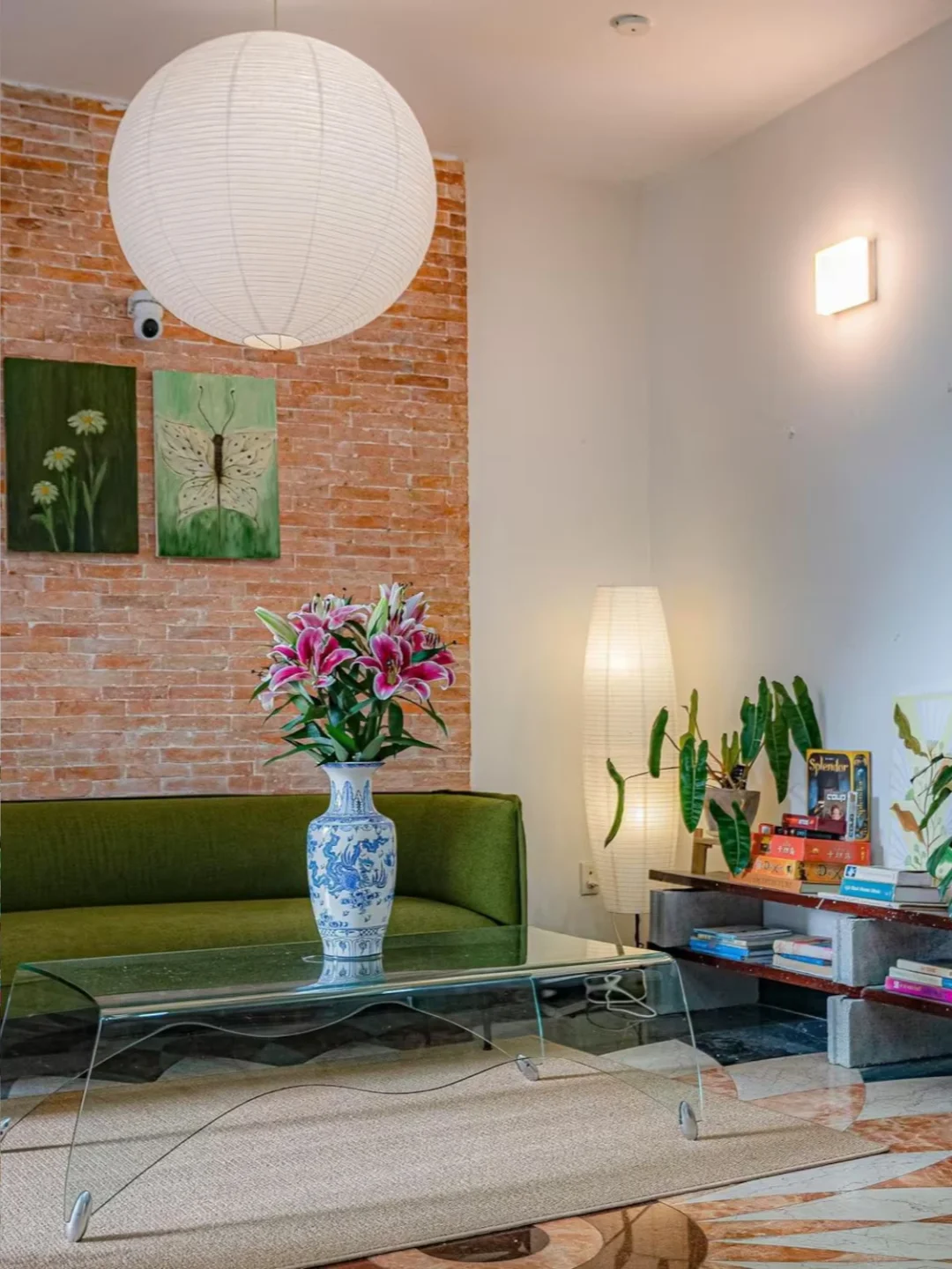 从步入院子开始,就会感受到深深的疗愈,各种品种的绿色植物遍布屋内和院落,生机勃勃;精致的装修、复古的摆件、漂亮的挂画让人目不暇接,完全就是理想居所的样子