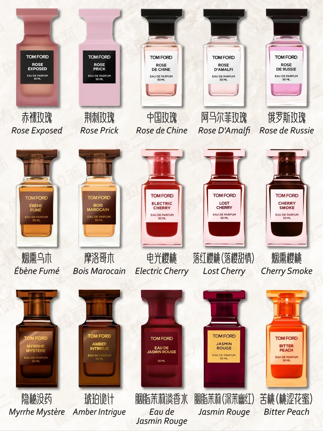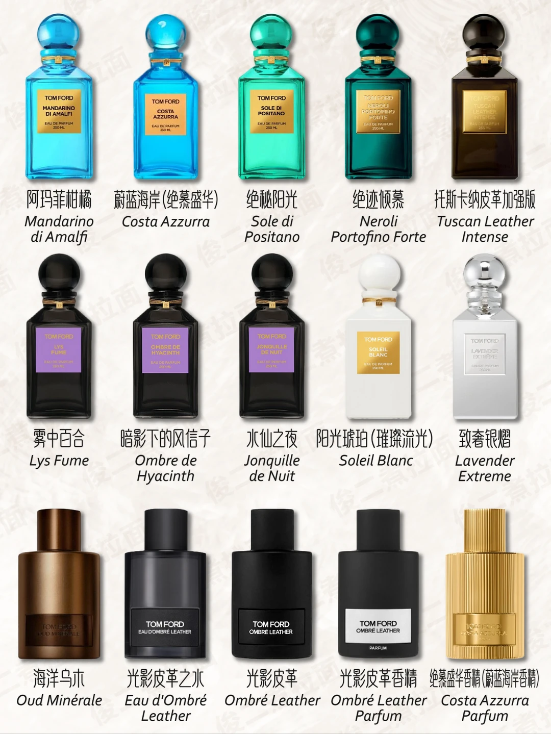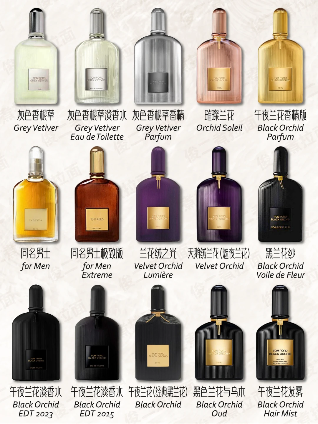 💦汤姆•福特的第一款香水Black Orchid于2006年发行。与之合作过的调香师有:David Apel, Yves Cassar, Antoine Maisondieu, Rodrigo Flores-Roux, Olivier Gillotin, Clement Gavarry, Yann Vasnier以及Firmenich。