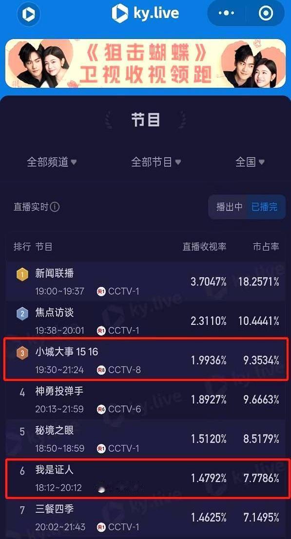 2.12%瞬间飙红,粉丝却吵翻天 昨晚央视六套重播《我是证人》,杨幂出场那分钟收视冲到2.12。粉丝截图刷屏,说把隔壁《小城大事》按在地上摩擦。我点开实时曲线,发现那一下像烟花,亮完就掉。整晚平均只有1.4,《小城大事》稳稳1.9。数字不会撒谎,人会。 粉丝掐架见怪不怪,拿峰值当总成绩,跟拿彩票中五块就说自己财富自由一个道理。真正该看的,是片子为什么能第十五次回央视。悬疑节奏快,盲人追凶设定新鲜,2015年的片现在还能打,说明好故事永不过期。 新剧被踩也不冤。年代剧开头铺背景,节奏慢,收视曲线像心电图,起起伏伏才正常。赵丽颖黄晓明扛收视,靠的是长线观众,不是一分钟爆点。两边粉丝吵演技、吵转型,吵到最后,片方偷偷笑:免费热搜挂一天,省了几百万宣传费。 下次再看到谁家吹“秒杀”,先问一句:平均值敢不敢放?峰值只是心跳,平均才是寿命。