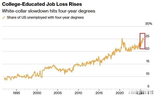 突发消息:拥有四年制大学学位的美国人,目前占美国失业人口的比例高达25.3%,创历史新高。自2008年以来,这一比例翻了一番,导致目前有超过190万25岁及以上的大学毕业生处于失业状态。这是自1992年开始收集数据以来的最高水平。 原因分析: 人工智能(AI)影响:分析指出,企业正加速利用AI替代白领岗位,导致专业及技术服务行业招聘缩减。 “完美风暴”:纽约联储官员指出,应届毕业生正面临需求饱和与技术变革的“完美风暴”,即便整体经济看似稳健,应届生的入职门槛却显著提高。 行业两极分化:近期的就业增长主要集中在医疗保健和酒店业等行业,而科技、咨询和计算机系统设计等高学历聚集的行业就业人数反而出现缩减。 目前,全美整体失业率维持在约 4.4%(2026年1月数据),但高学历人群在失业构成中的比例增加反映了劳动力结构性失衡的加剧。
