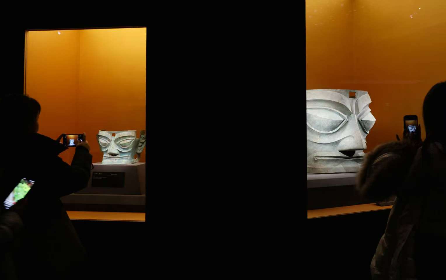 两件戴冠纵目面具首次在展览中同台亮相