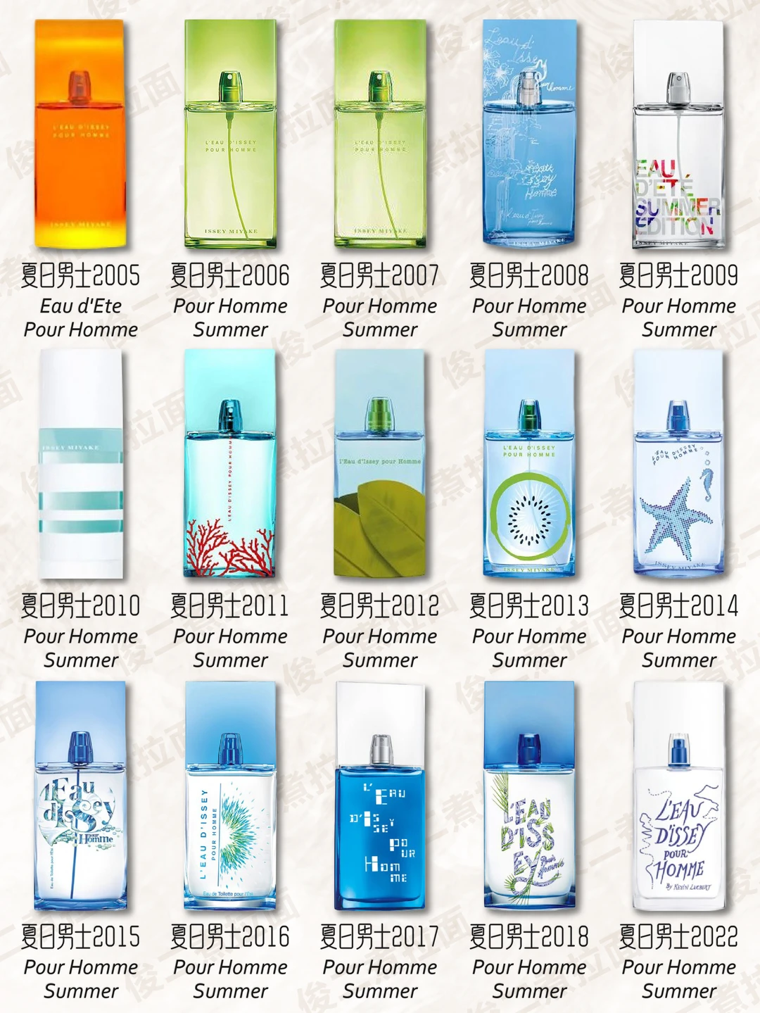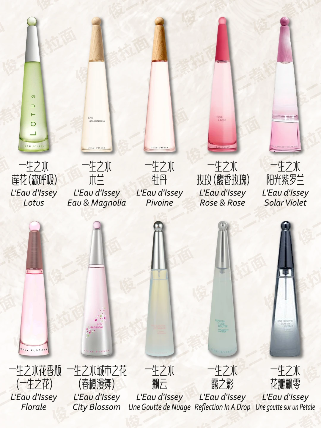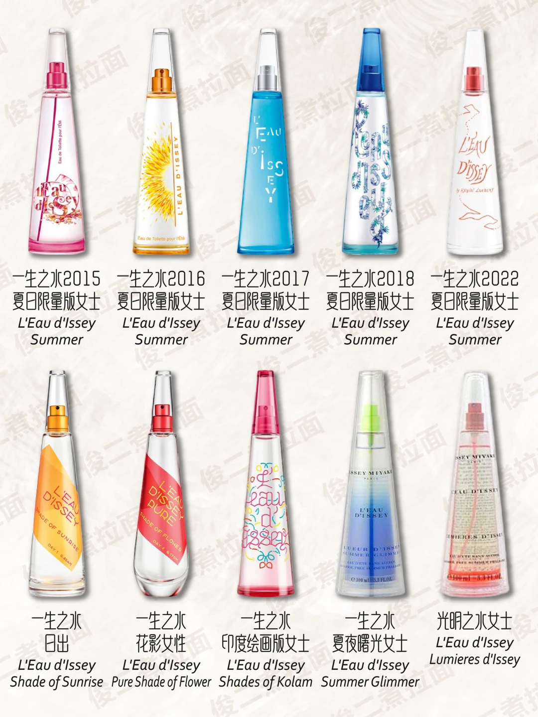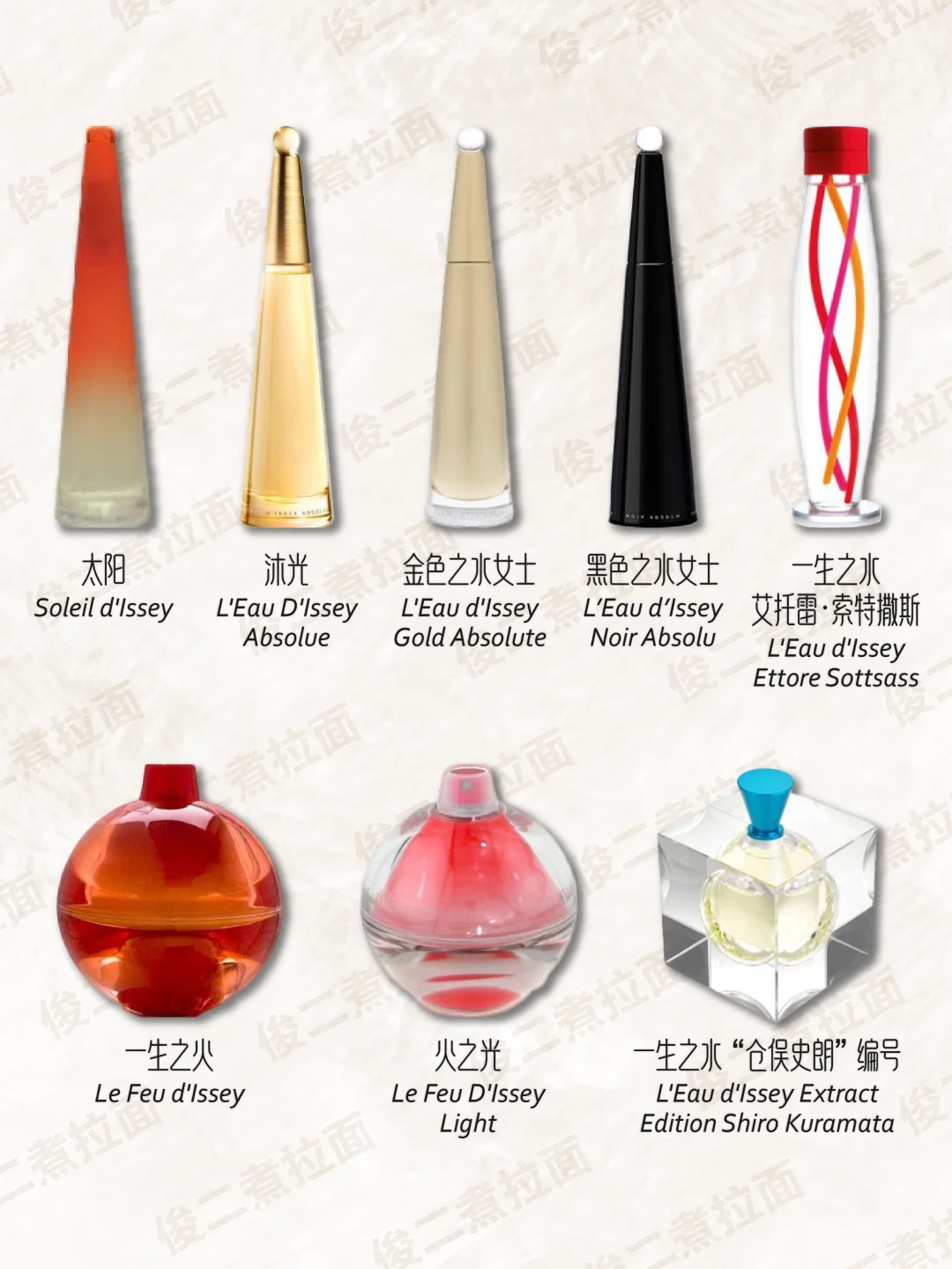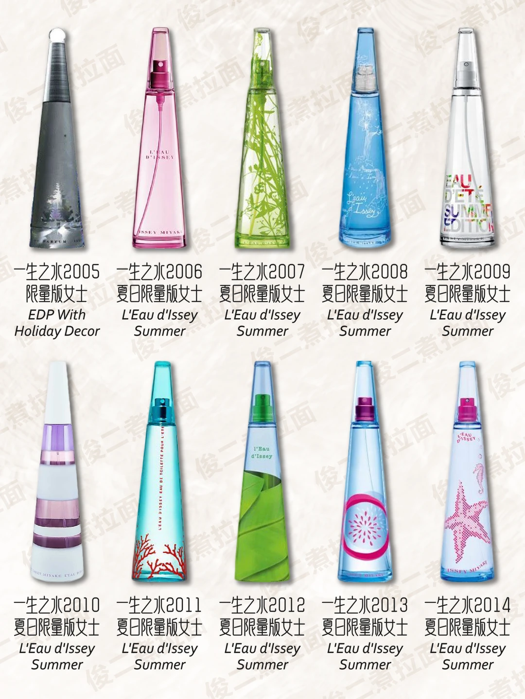 [流汗R] 1994年,三宅一生推出其经典之作——“一生之水(L'Eau D'Issey)”。一生之水以其独特的瓶身设计而闻名,三棱柱的简约造型,简单却充满力度,玻璃瓶配以磨砂银盖,顶端一粒银色的圆珠如珍珠般迸射出润泽的光环,高贵而永恒。 这款如泉水般清澈的香水是三宅一生创造力和独特风格的忠实反映。三棱柱的简约造型不仅折射出阳光穿过水的光影魅力,还折射出大师对美、自由及生存的观点与真我的风采。以花香、麝香和木香为主的一生之水妖媚而清新,初调湿润幽香,由睡莲、玫瑰与樱草混合而成;中调则弥漫着牡丹、百合的高贵清雅;基调则充满了森林的气息,幽远而宁静,令人迷惑的麝香将所有余下的香息一并捕获,散发出最后的浪漫。这样一瓶汇集了人世间种种香息的一生之水,将女人的柔情与水之清纯融为一体,似乎体现着"云在青天水在瓶"的深刻禅意。