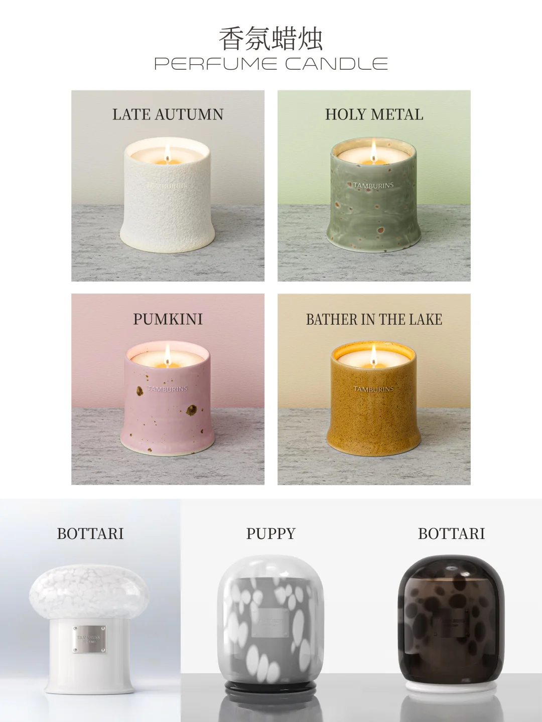 ⑤ 香氛蜡烛系列:TAMBURINS 陶瓷香氛蜡烛,高温烧制下的瓷面具有独特的纹理,为室内空间带来温暖舒适的香气。