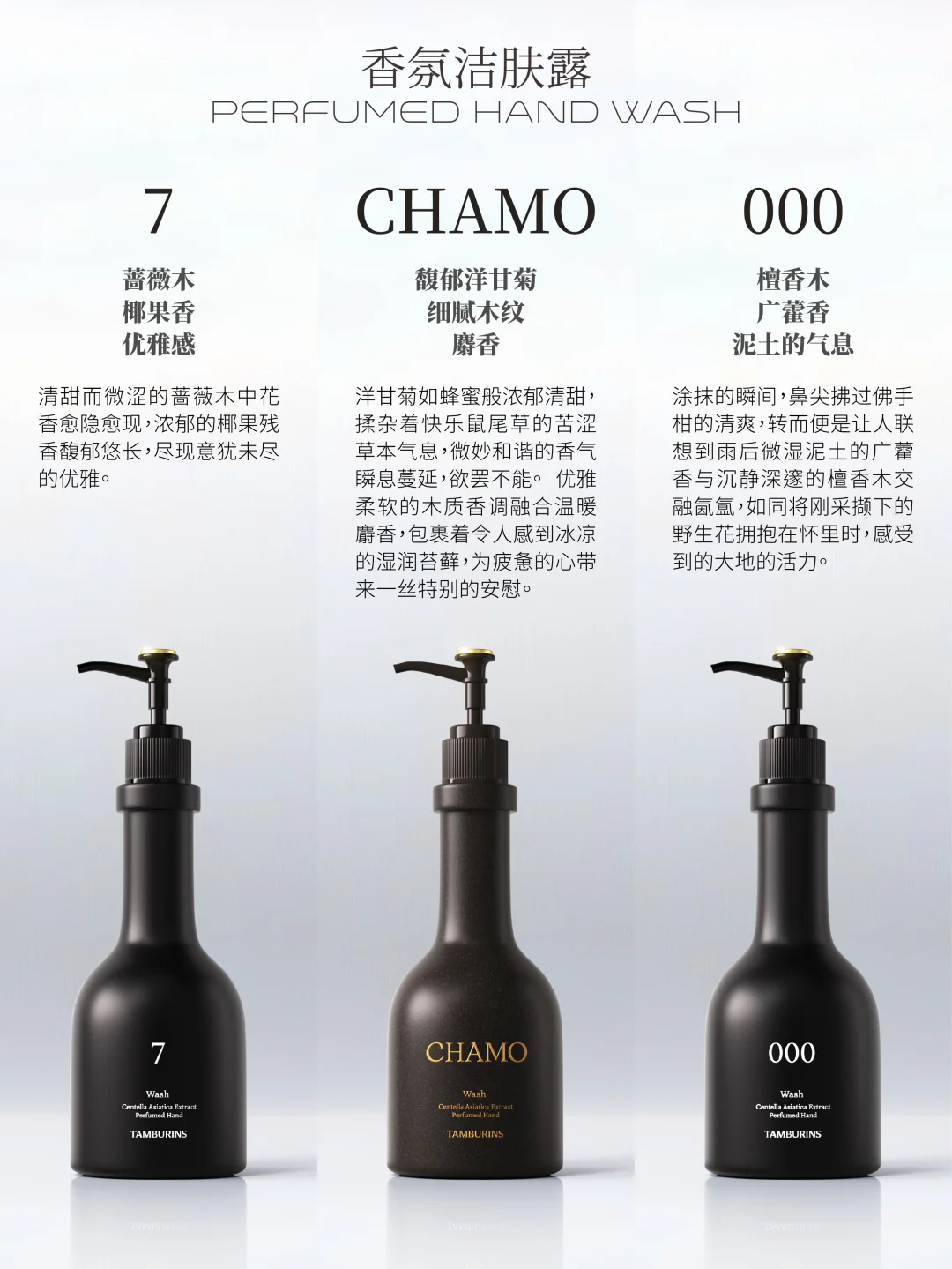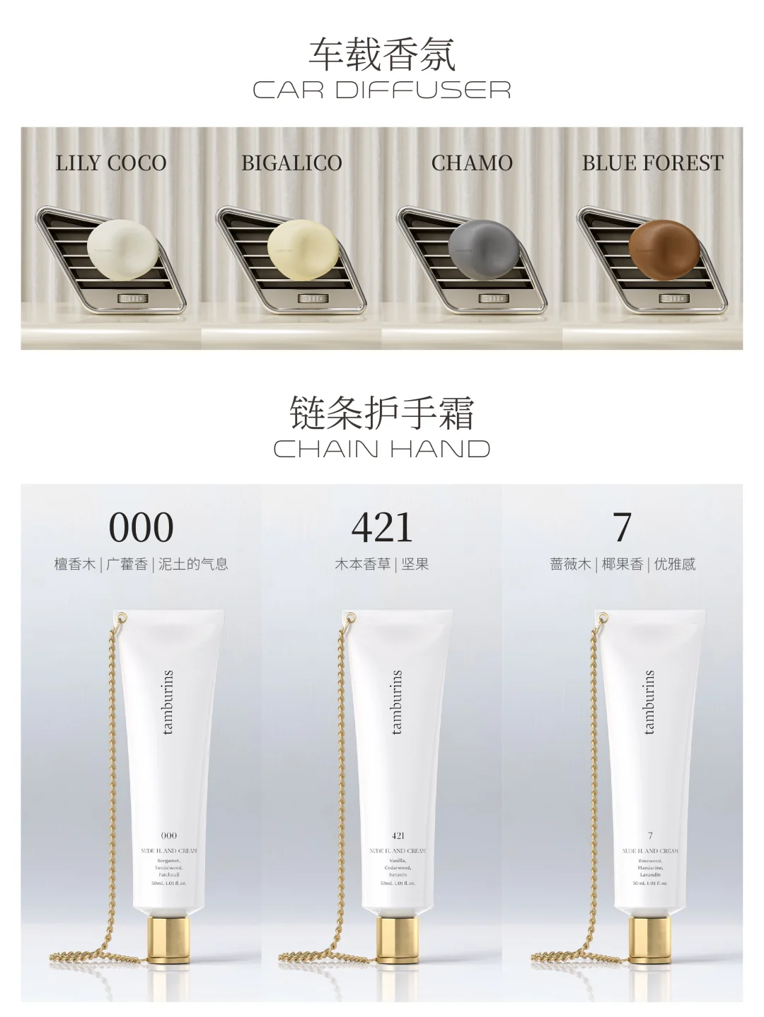 ⑩ 手部&身体香氛护理系列:富含 TAMBURINS 经典香型,在散发香气的同时,为肌肤带来充分的水润修护与滋养,保湿嫩肤。