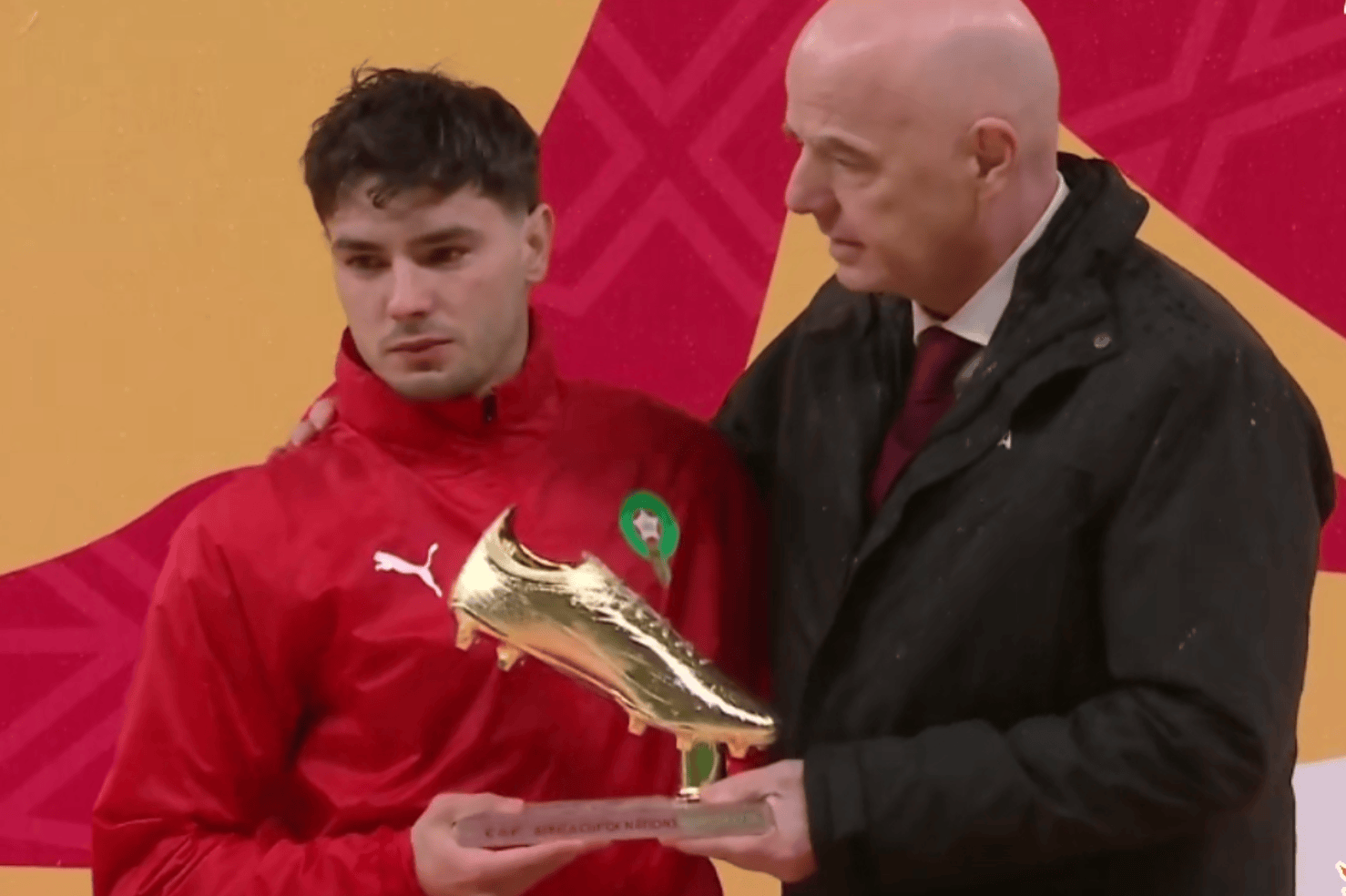 赛后的颁奖仪式上,卜拉欣-迪亚斯获得了本届赛事的金靴奖。