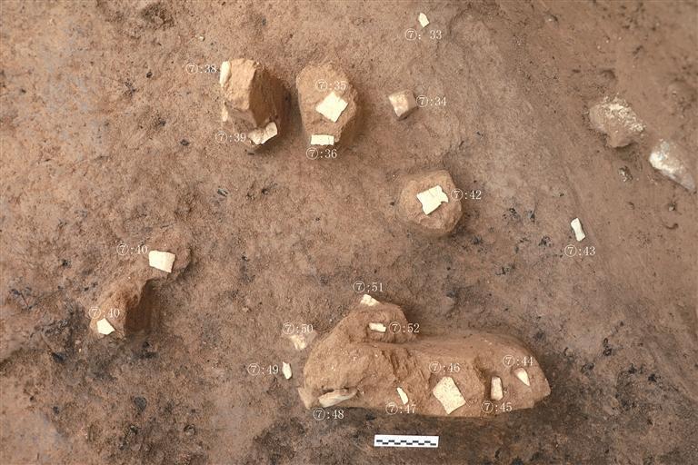 此外,考古人员发现一批西周甲骨文,在甲骨形制、年代判定和刻辞内容等方面均有新发现。宫城南门外壕沟内出土卜甲、卜骨残片213片,初步辨识出刻辞295字。1月12日,陕西省考古研究院工作人员告诉记者:“周原遗址出土的甲骨刻辞内容丰富,涉及天文历法、历史地理、军事战争等多个方面,历史价值重大。”(