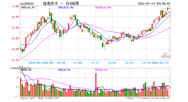 信息技术ETF(159939)业绩比较基准为中证全指信息技术指数,管理人为广发基金管理有限公司,基金经理为霍华明,成立(2015-01-08)以来回报为97.80%,近一个月回报为18.10%。