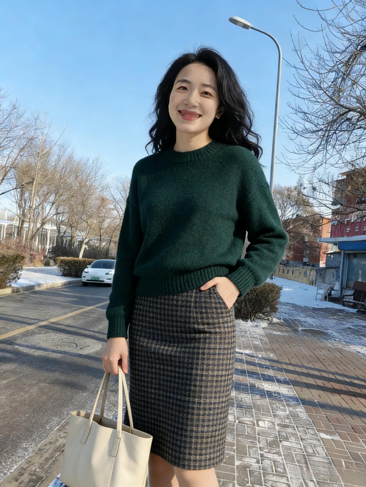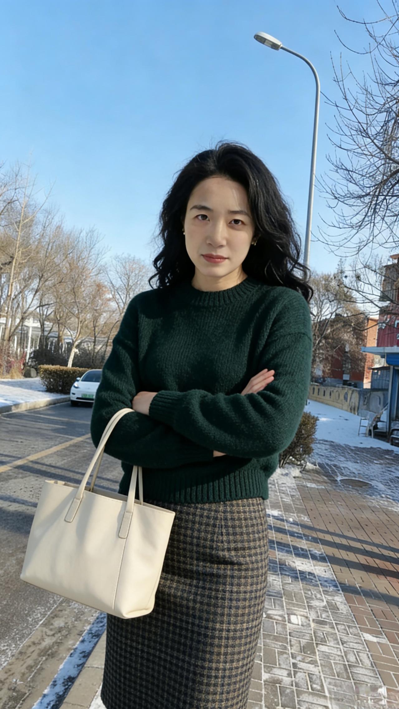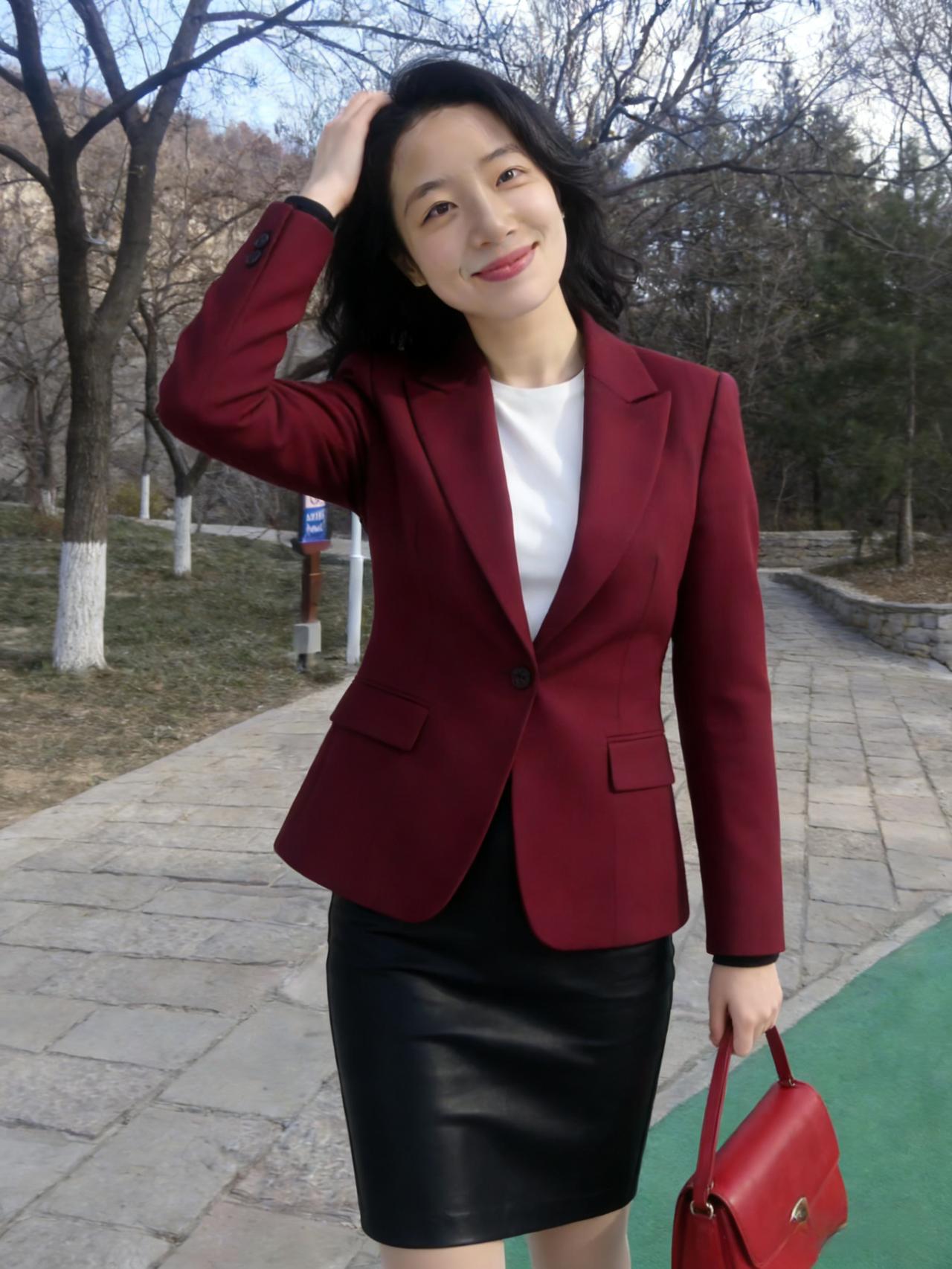 第一种温柔是墨绿的绒 裹着清晨的霜,等第一缕阳光 第二种是酒红的西装 衬着白衫,把干练揉进笑意里 ~ 第三种温柔是米白的针织 搭着驼色长裤,漫过午后的风 第四种是焦糖色风衣 系起腰带,转身时带起细碎的雪 ~ 她把风景穿在身上 用不同的色块,拼贴出生活的诗行 当睫毛接住阳光,当裙摆扫过落叶 所有平凡的日常,都成了心动的瞬间