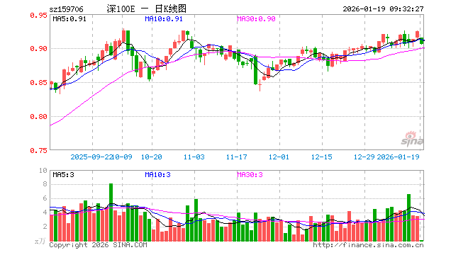 1月19日,深证100ETF华安(159706)开盘跌0.97%,报0.915元。深证100ETF华安(159706)重仓股方面,宁德时代开盘跌0.24%,美的集团涨0.08%,中际旭创跌1.94%,东方财富跌0.38%,新易盛跌1.25%,立讯精密涨0.03%,比亚迪涨0.99%,阳光电源跌0.58%,五粮液跌0.16%,格力电器涨0.02%。