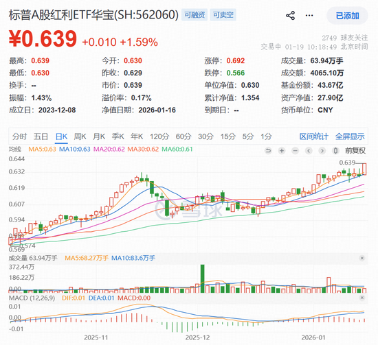 值得注意的是,管近期科技成长主线走强,资金对红利资产的配置热情依然不减。截至2026年1月16日,标普A股红利ETF华宝(562060)已连续5日揽金3730万元;拉长时间看,近10个交易日中有9日净流入,合计吸金逾2.1亿元,最新规模突破28亿元,创历史新高。