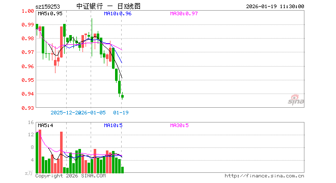 1月19日,截止午间收盘,银行ETF博时(159253)跌0.32%,报0.937元,成交额175.31万元。银行ETF博时(159253)重仓股方面,招商银行截止午盘跌0.21%,兴业银行跌0.15%,工商银行跌0.39%,农业银行跌1.11%,交通银行跌0.44%,江苏银行跌0.72%,浦发银行涨0.36%,平安银行跌0.54%,民生银行跌0.27%,上海银行跌0.10%。