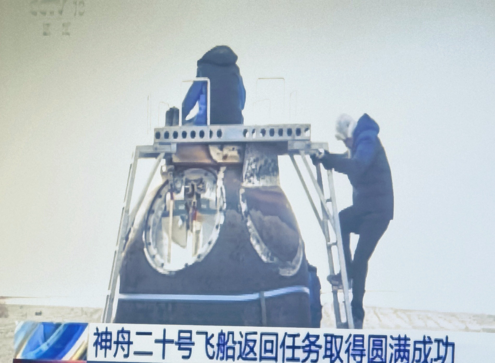 【航天飞天舱外服 飞天舱外服B(蓝色)随神舟二十号飞船返回舱顺利返回地球】返回前