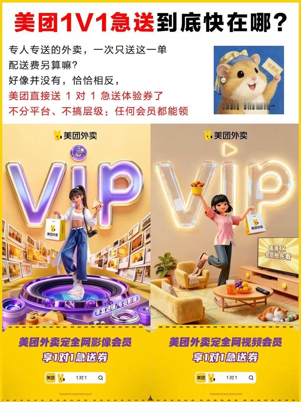 宝子们,1v1急送到底快在哪?它可是专人专送模式!平台按骑手实时定位派最近餐单,规划最优路线,骑手全程就送这一单,有福利也乐意接。现在平台给会员送券,上美团搜“1对1”领,快冲!美团1对1宠全网会员年龄在宠爱面前自动失效了