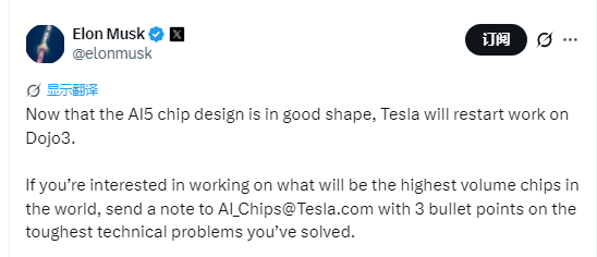 马斯克这一评论表明,他可能倾向于在特斯拉的内部芯片上开发Dojo3,尤其是备受期待的AI5——他称这是对公司现有硬件的重大升级。值得注意的是,马斯克早些时候曾暗示,特斯拉计划与台积电、三星等芯片制造商合作生产AI5芯片,并表示公司暂无取代英伟达数据中心芯片的计划。