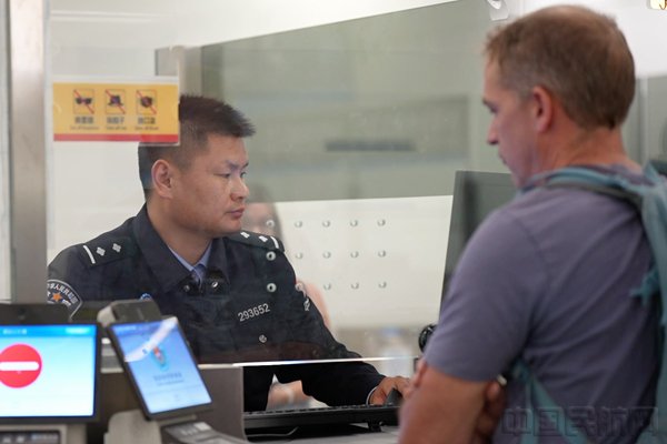 白云边检站移民管理警察为旅客办理出入境通关手续(本文图片均由白云机场提供)