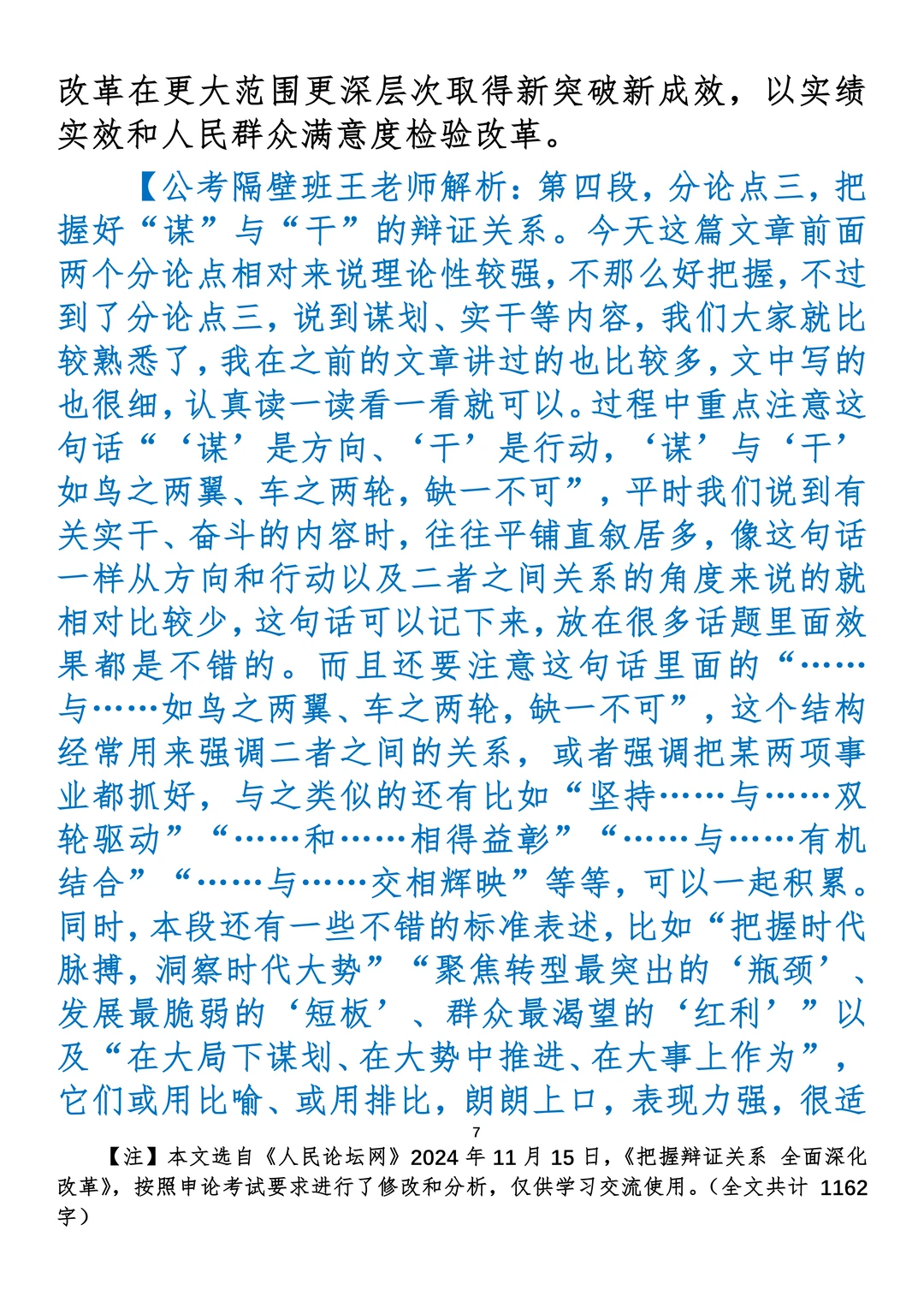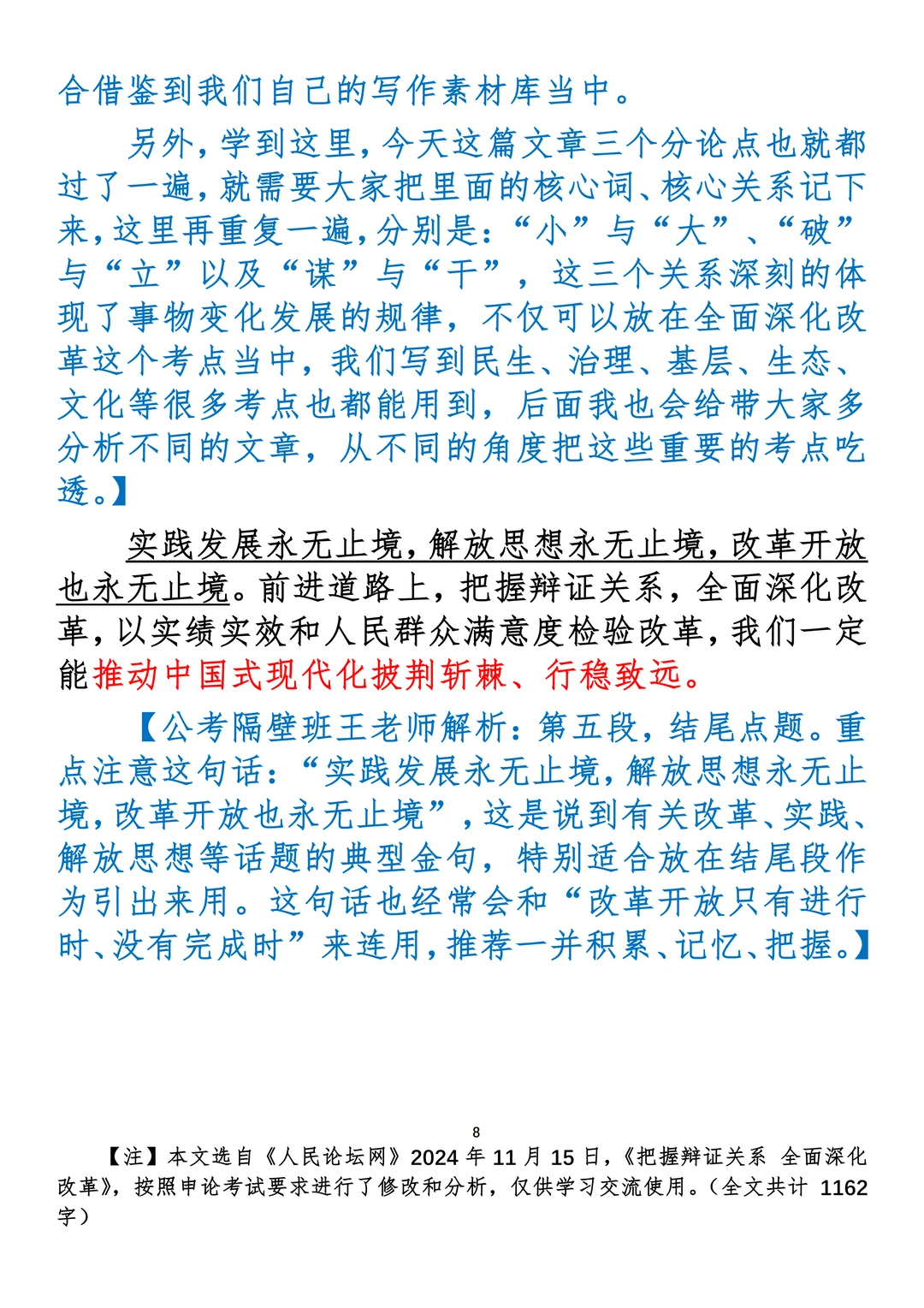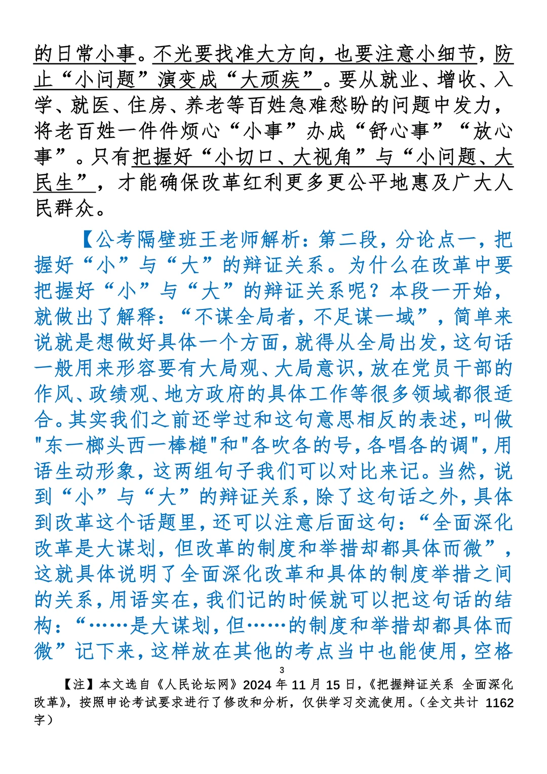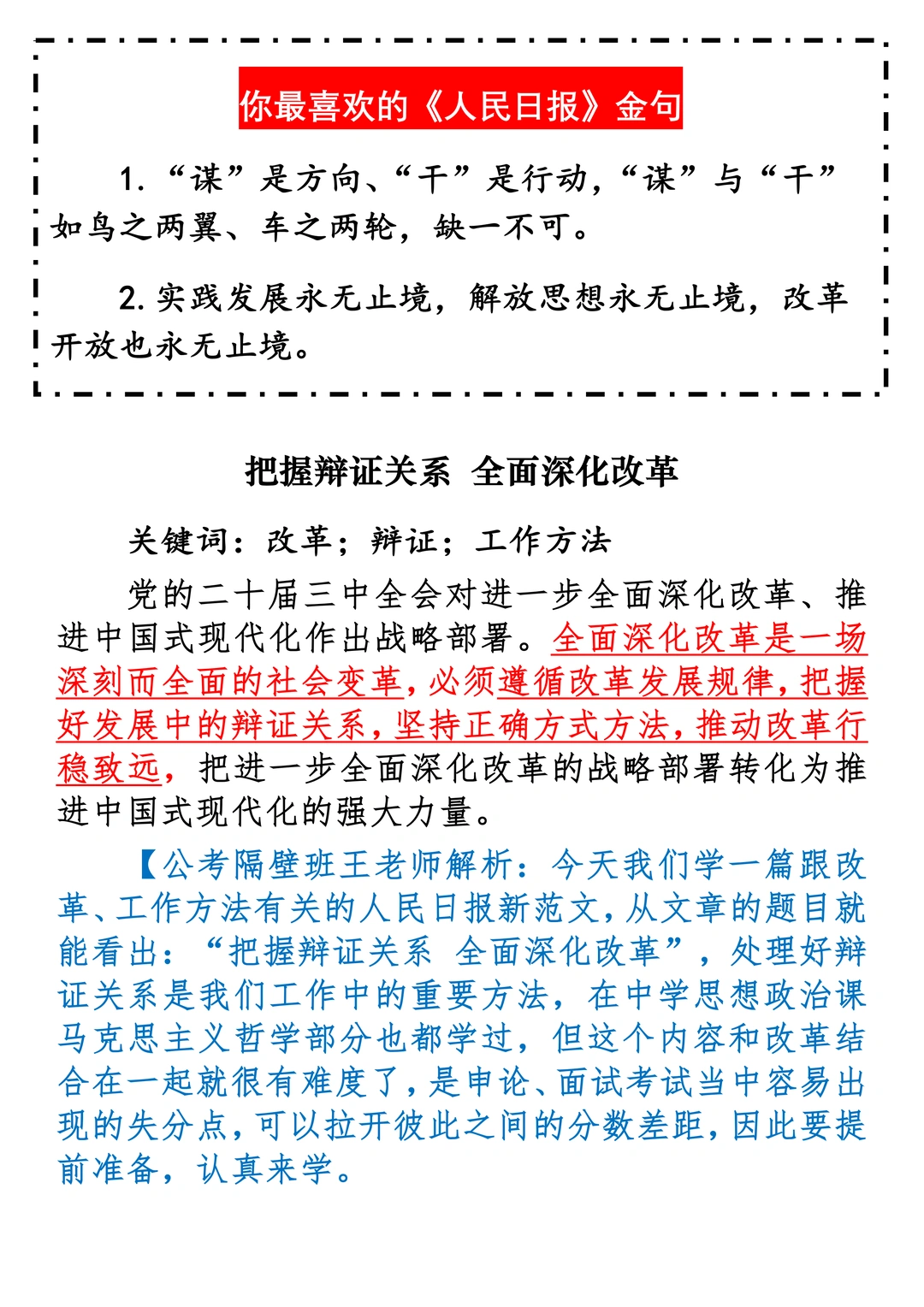 如何抄写:每日抄写文章发在“公考隔壁班王老师”账号,红色字是重点句和结构句,黑色字是正文,蓝色字是解析,大家抄写时不必抄蓝色字。建议先通读全文,做到心中有数再开始抄写,效果会更好。 关于文章:抄写文章来源于人民日报,但每篇文章我都根据申论考试要求进行了修改:一是重写或修改开头、结尾;二是统一段首句句式结构;三是调整段落字数,使文章结构更均衡;四是简化复杂长难句,使之更具可模仿性。每篇文章无论修改多少,都是基于申论考试要求,毫无对人民日报文章品评之意。(此处致敬人民日报)