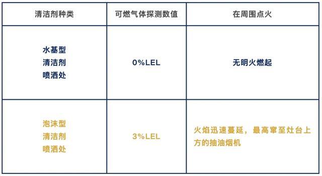 实验人员将市面上常见的清洁剂(涵盖不同类型)分别均匀喷洒在灶台上,待清洁剂挥发10秒后,先用可燃气体探测器检测,随后进行点火测试。