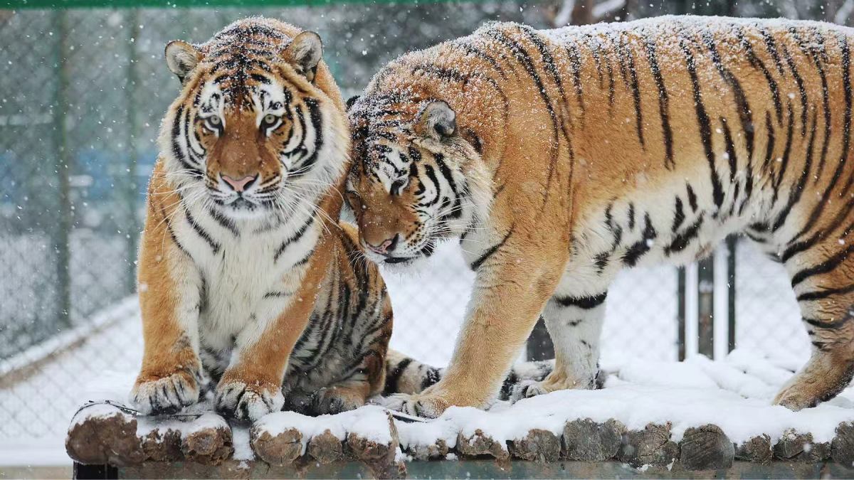 尽管室内温暖如春,一些耐寒的动物仍活跃在雪景中。天鹅湖中,水禽悠然游弋;虎山内,东北虎踏雪巡视;猕猴和小熊猫等也不畏寒冷,在雪地里嬉戏玩耍,为冬日园景增添生机。