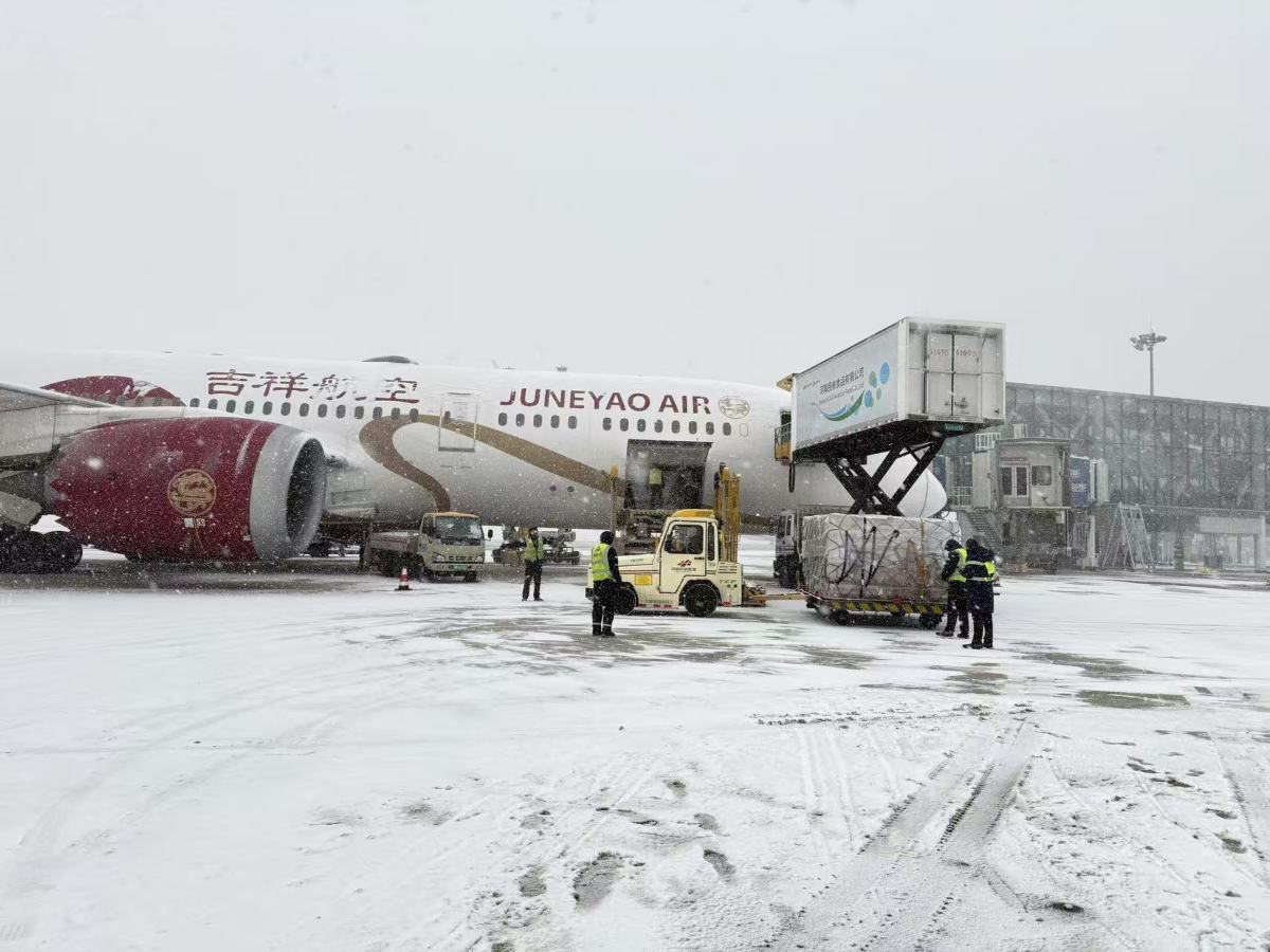 针对本轮降雪天气,郑州机场已持续开展除冰除雪应急保障工作,调配专业除雪车、吹雪车组建作业编队,对跑道、滑行道循环开展除冰雪及融雪剂撒布作业。及时为航空器开展除防冰作业,截至16时已共计完成109架次航空器除冰作业。同时,为做好旅客保障工作,航站楼内已增设问询岗,加开值机柜台,为旅客提供延误咨询、重点帮扶等服务。