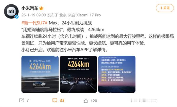 用短跑速度跑马拉松!小米新一代SU7 Max 24小时耐力挑战:斩获4264km