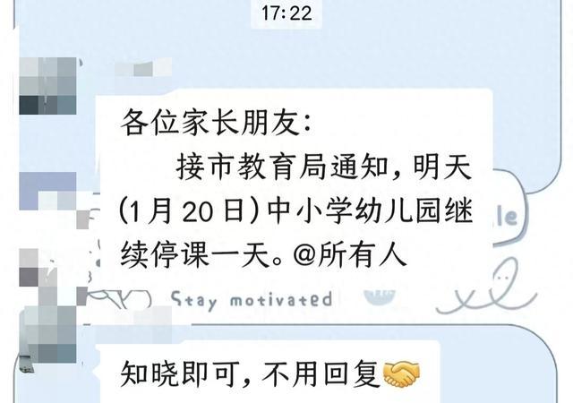 截至目前,记者核实到,郑州市金水区、二七区、郑东新区、中原区、惠济区、高新区、航空港区均已发布停课相关通知,1月20日(周二)初中、小学、幼儿园全天停课,以保障师生安全。