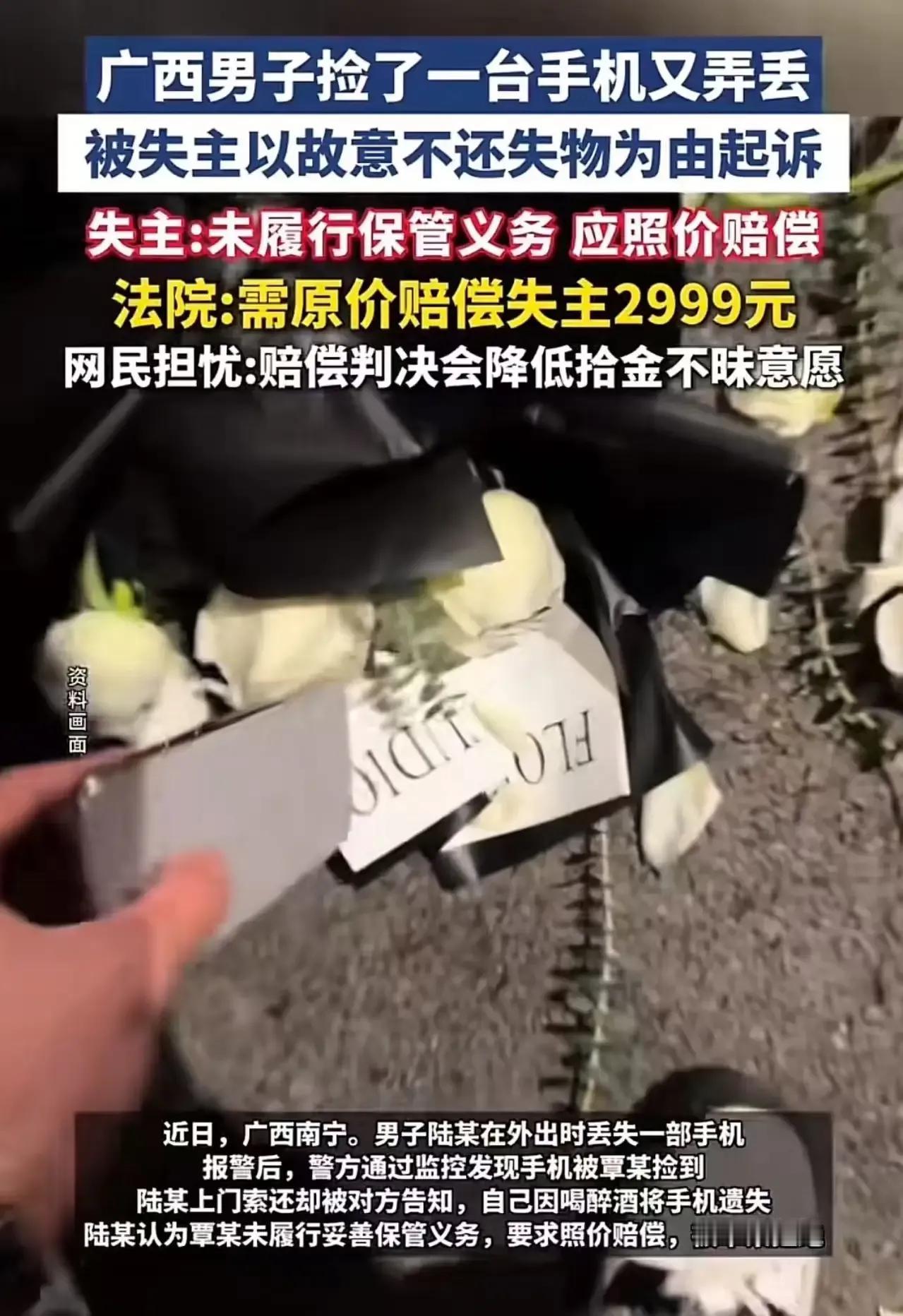 “捡了个手机,结果赔了三千块!”广西icon,男子捡了一台手机又弄丢,被失主以故意不还失物为由起诉!失主:“未履行保管义务,应照价赔偿!”男子:“我捡到又丢掉了,凭啥让我赔钱?”法院:需原价赔偿失主2999元!网友:看的我都不敢捡东西了! 这到底是“善意的拾金不昧”变成了“赔钱的噩梦”吗?有人说,捡到东西本该是件好事,是社会的温暖体现,可现实却狠狠打了我们一个耳光。这个故事告诉我们:善意未必总能换来善果,反而可能让你陷入一场“赔偿风暴”。 事情的起因很简单——一名广西的男子在街头捡到了一台手机,本以为是个好心的举动,谁知道事后竟然变成了“赔钱”的噩梦。失主声称男子“未履行保管义务”,要求赔偿手机的原价2999元,男子却觉得“我只是捡了个手机,丢了又不是我故意的,凭啥让我赔钱?”法院最终判决:男子需照价赔偿失主2999元。 这场官司像极了一面镜子,映照出社会上许多关于“善意”与“责任”的复杂关系。有人说:捡到东西难道不应该归还?可是,法律的界线在哪里?如果你捡到一件东西,没有明确的归还责任,是不是就意味着你可以随意丢弃?更何况,男子的“丢失”行为究竟是意外还是疏忽?法院的判决似乎告诉我们:在法律面前,善意也要付出代价。 更令人深思的是,网友们的反应也异常激烈。有的人愤怒地表示:“看完这个我都不敢再捡东西了!万一被告上法庭,赔个几千,谁受得了?”也有人觉得:“法律其实也有不合理的地方,善意变成了赔偿的理由,社会的信任感在逐渐瓦解。”这场纷争,不仅仅是一个个案,更折射出我们社会对“责任”与“权益”的认知差异。 其实,背后隐藏的,是我们每个人心中的那份“善意”。我们都希望这个世界多一点温暖、多一点信任,但现实却不断用规则和责任把善意绑架。我们该如何在守护自己权益的同时,又不失那份善良?这不仅仅是法律的问题,更是每个人心中的一道难题。 这个故事,提醒我们:善意是一种美德,但在法律的天平上,善意也有它的边界。我们期待一个更公平、更有人情味的社会,但在这个过程中,每个人都要学会用智慧去平衡“善意”与“责任”。毕竟,社会的温暖,源自每个人心中的那份理解和包容。你怎么看?是不是也曾在拾金不昧的瞬间,突然觉得“责任”变得那么沉重?留言告诉我,让我们一起探讨这个令人心碎又发人深省的故事。失主倒打一耙 手机失主