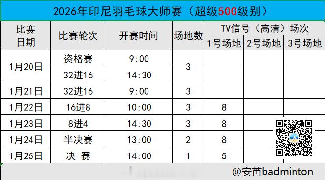 2026年印尼羽毛球大师赛首日赛程出炉(图1)完整签表(图2)开赛时间(图3)?