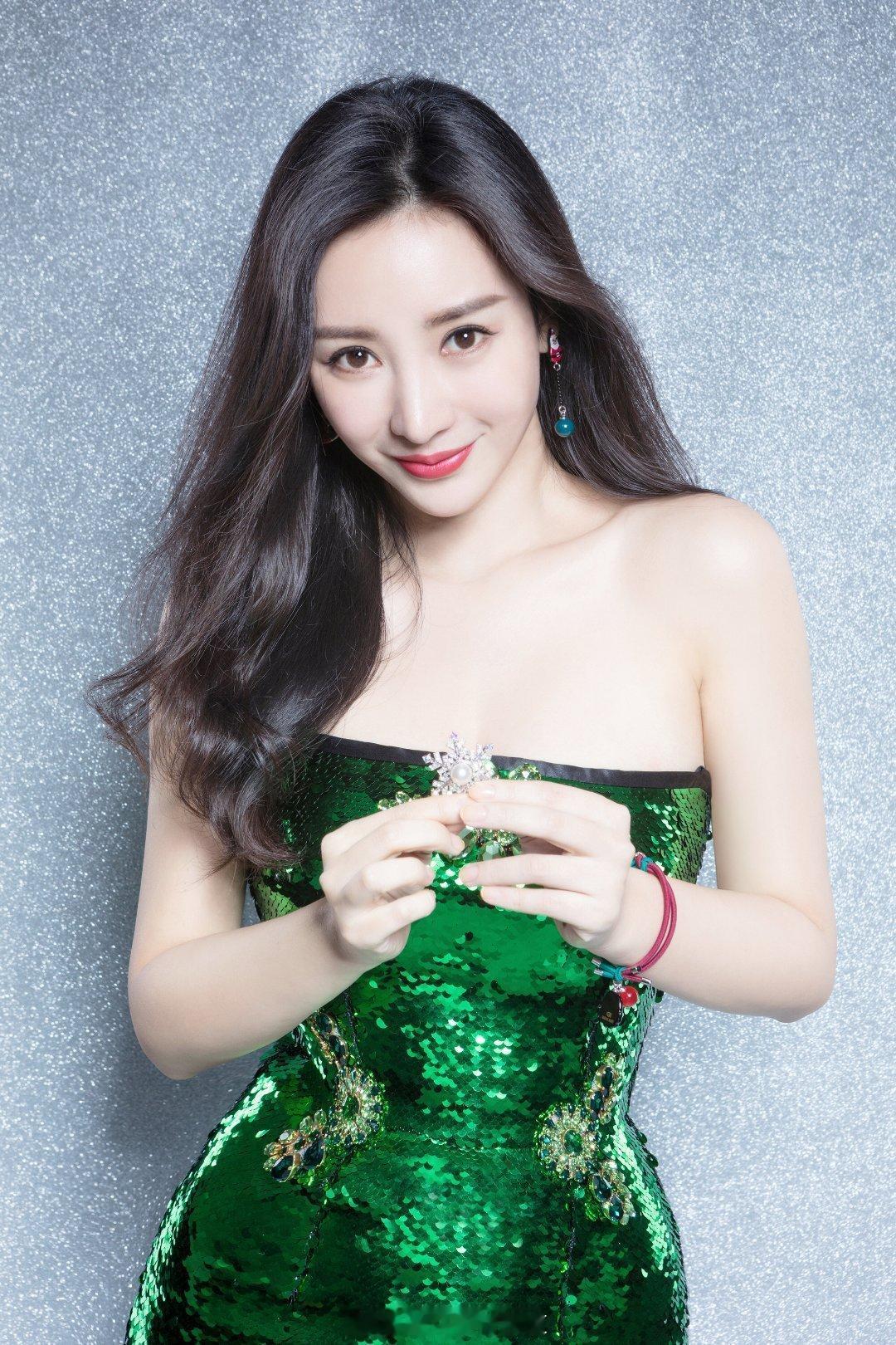 柳岩绿色抹胸九宫格