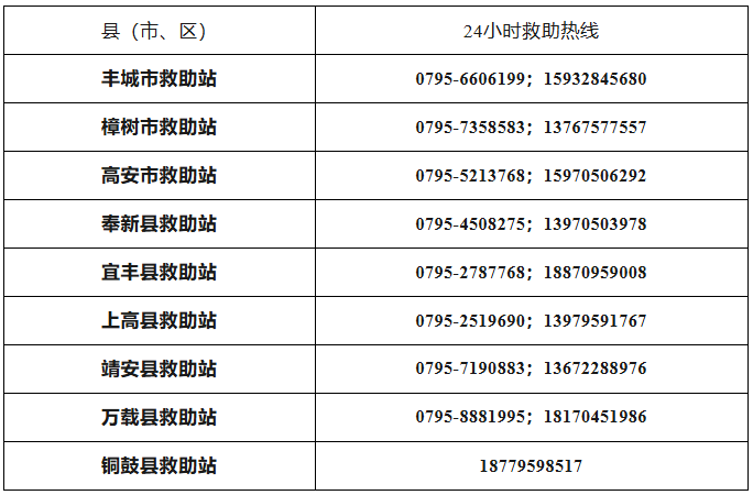 宜春市社会救助站(市未成年人保护中心)地址:宜春市袁州区学府路890号。24小时救助热线:0795-3572618。