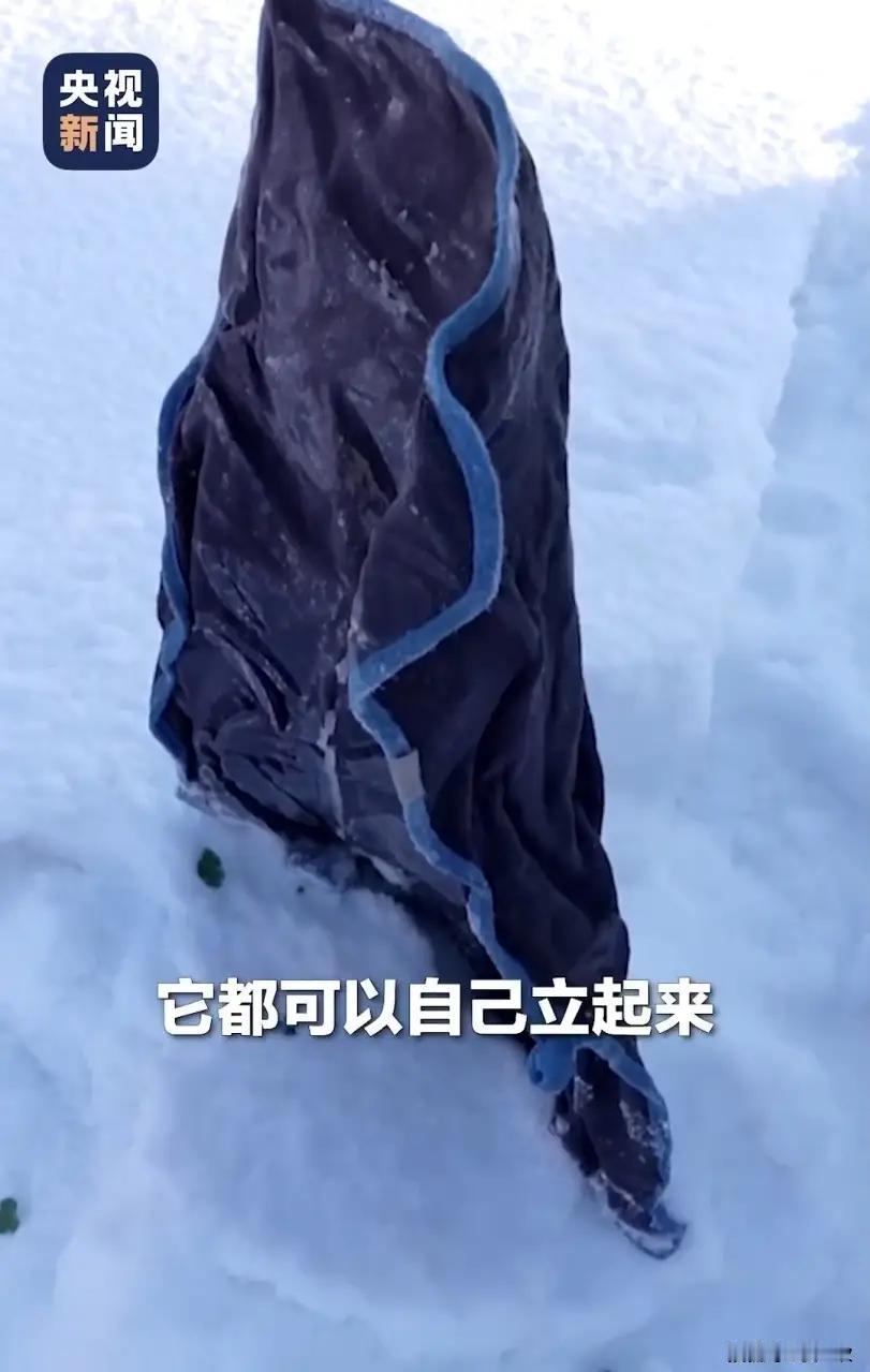 零下34℃,毛巾竟能直立?这背后隐藏着怎样的科学秘密? 零下34℃的极端低温,早已超越普通严寒的范畴,成为一场重塑万物形态的自然实验。在如此恶劣的环境下,湿毛巾竟然能够直立,这一现象引发了广泛关注。当水分子在接近绝对零度的低温中迅速冻结,形成了致密的冰晶结构,这些细小的冰晶如同支架一般,将毛巾纤维牢牢固定,使其失去柔韧性,获得支撑力。金属灯杆的高导热性进一步加速了毛巾的冻结过程,使得这一现象从偶然变为必然。这一看似简单的现象背后,蕴含着深刻的物理原理,为我们揭示了极端低温条件下物质形态的巨大变化。 毛巾站立实验 冰冻毛巾 吸水性毛巾