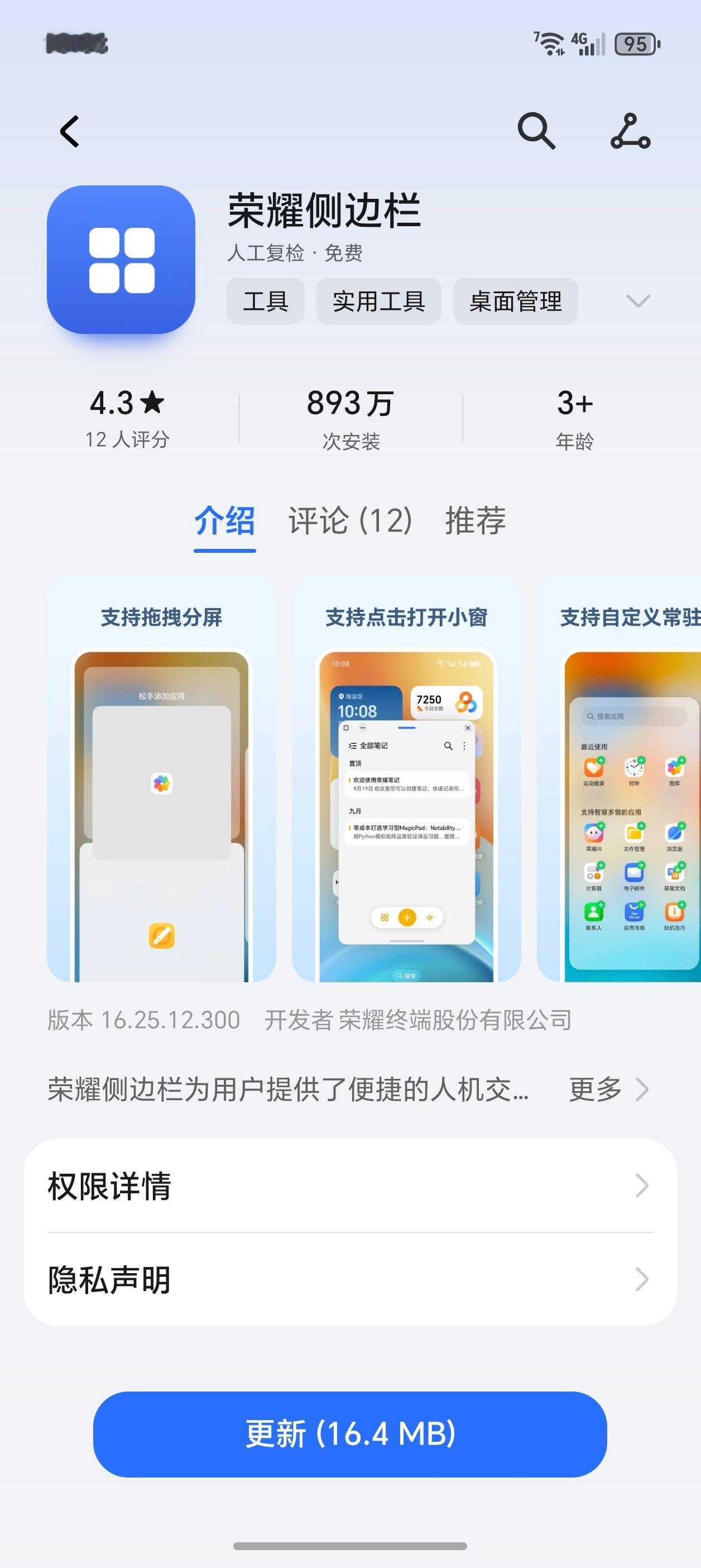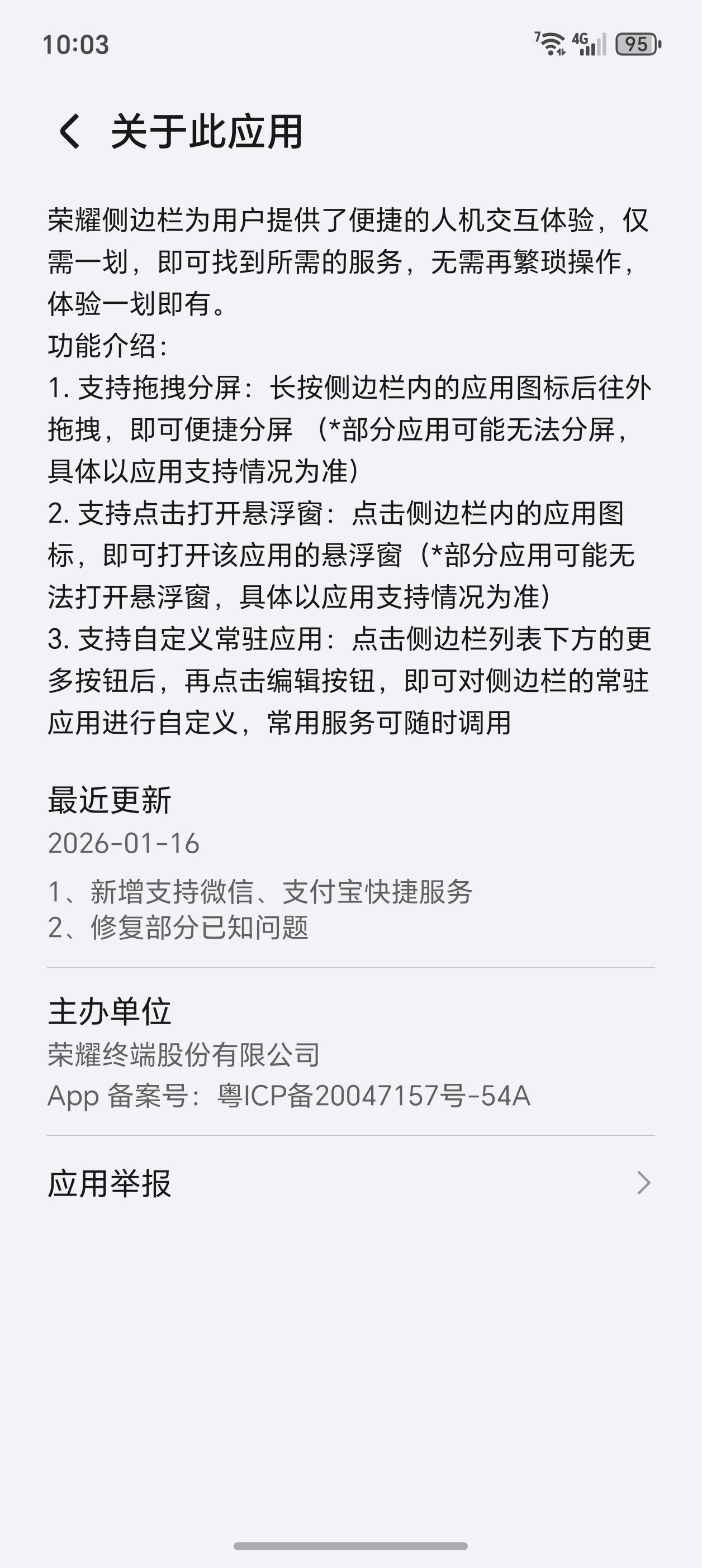 刚刚看到数码圈内大佬,分享了荣耀侧边栏更新之后的使用体验,搭配MagicOS 10系统的流畅度,支持拖拽分屏、支持点击打开悬浮窗、支持自定义常驻应用。这次更新支持了微信快捷服务、支付宝快捷服务,日常使用确实提升了体验感,测试阶段完成度还是蛮高的 畅聊数码新品 数码资讯