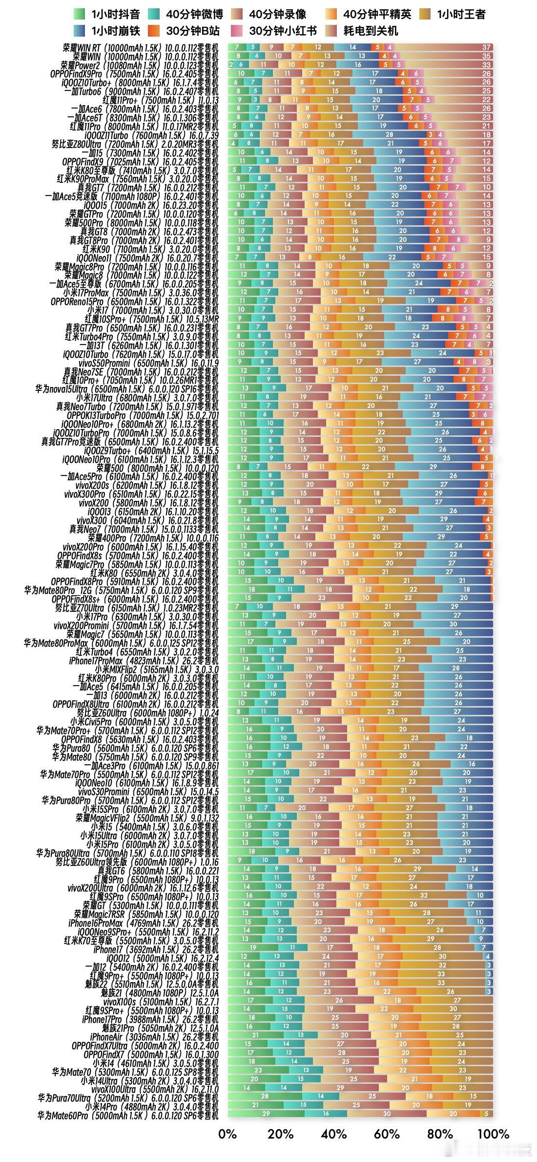 荣耀林总分享了,新评科技 测到死6.0 续航排行榜,可以看到荣耀WIN RT的零