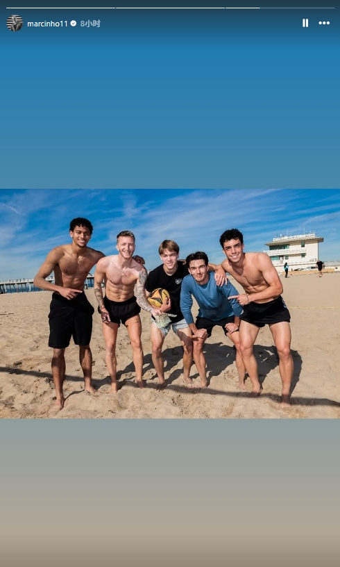 直播吧01月20日讯今日罗伊斯晒出与队友在沙滩奔跑、打排球的图片。