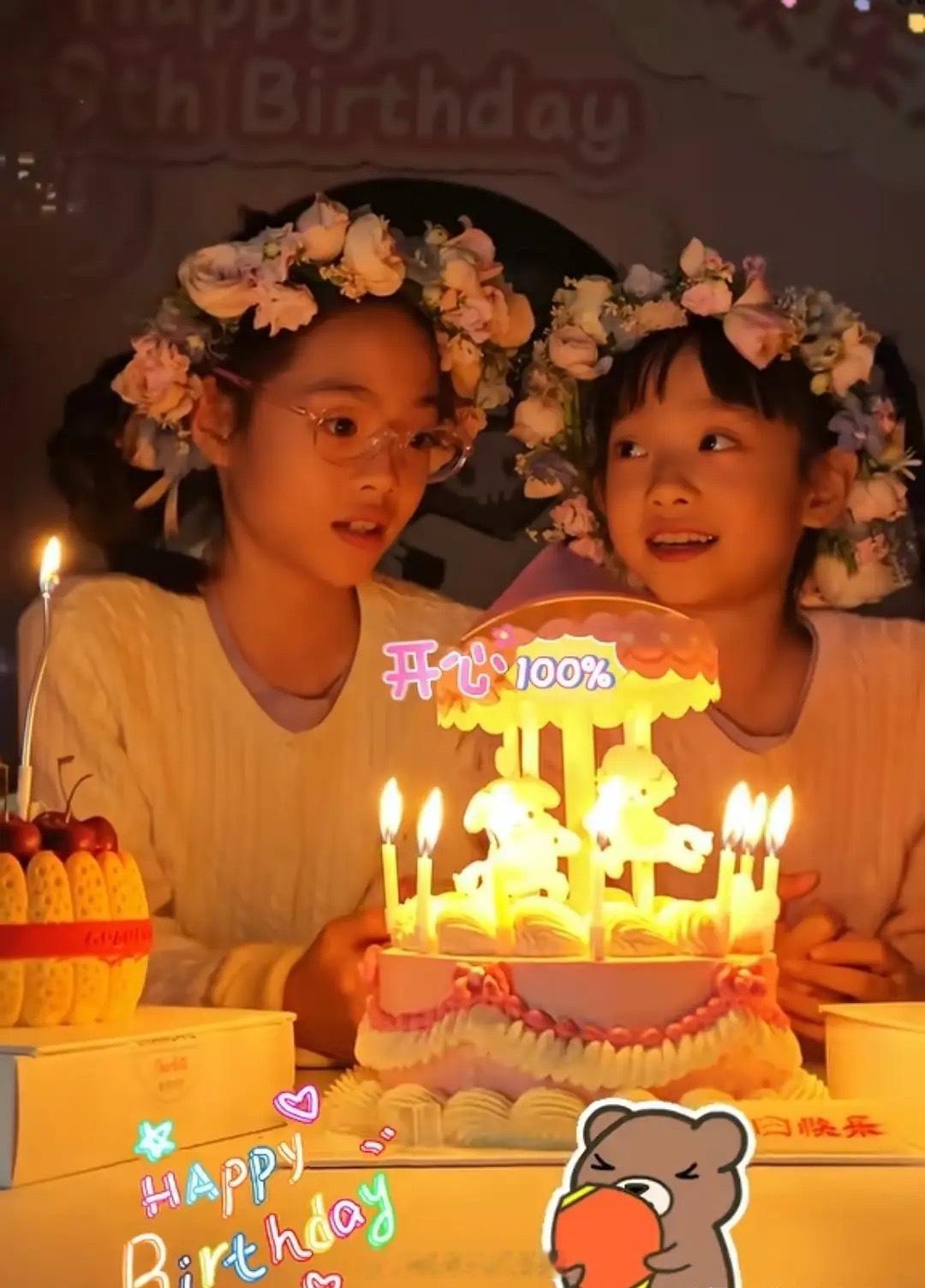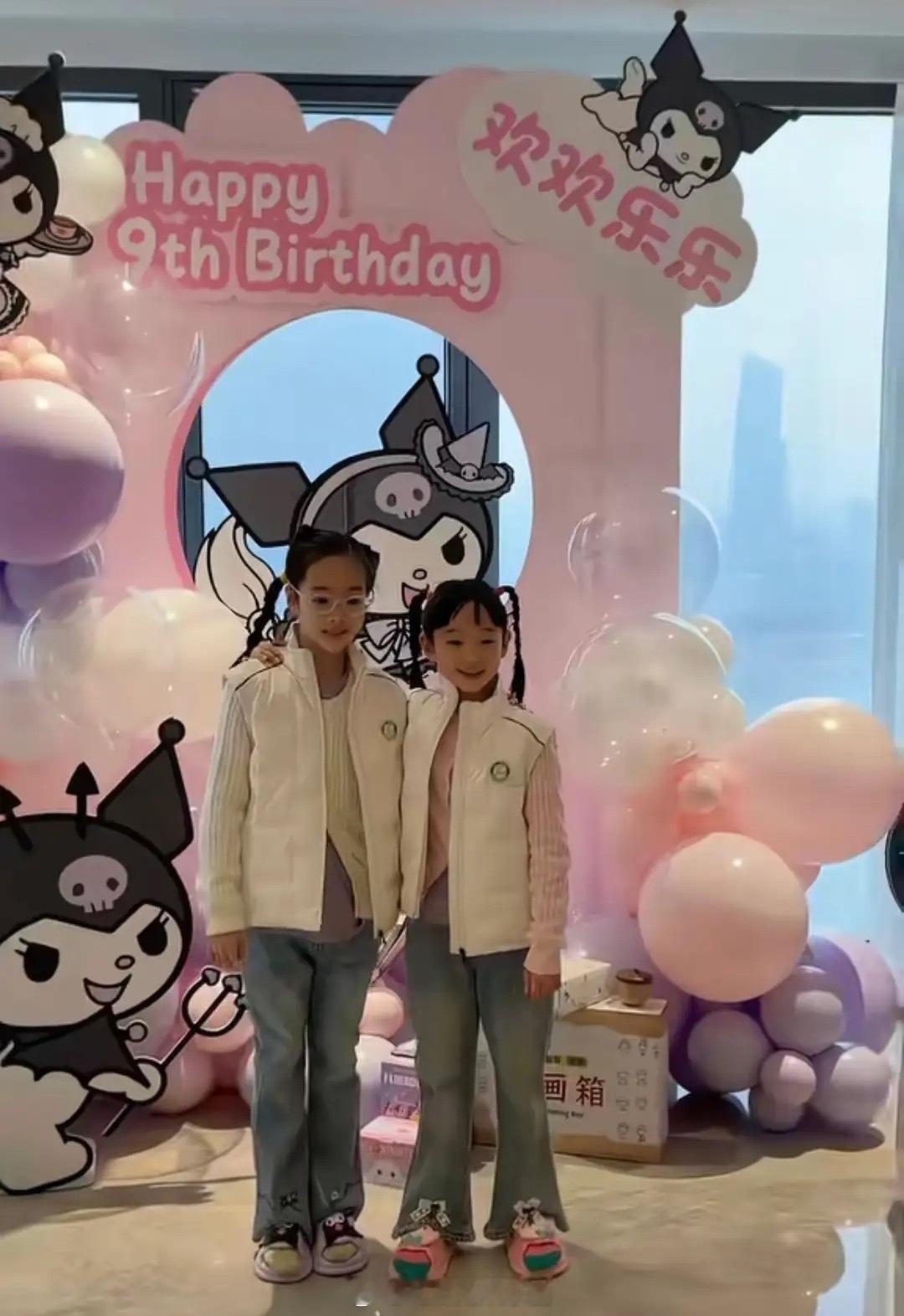 杨威女儿9岁生日,姐姐个头矮一截,妹妹近视眼,双胞胎差别好大!
