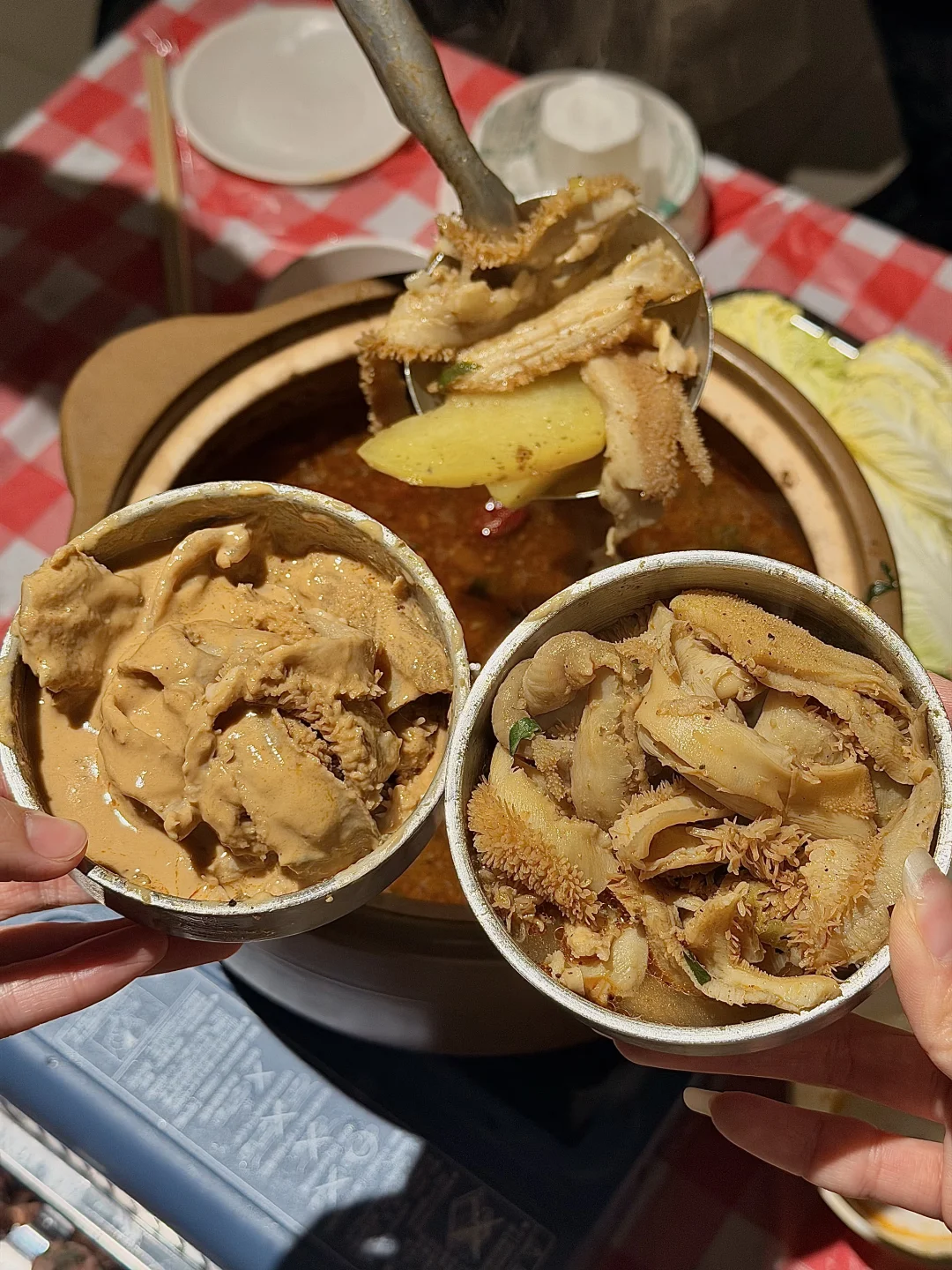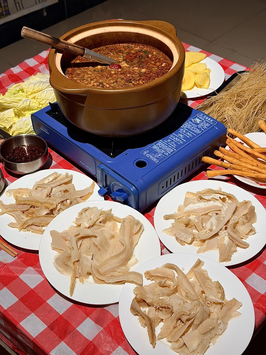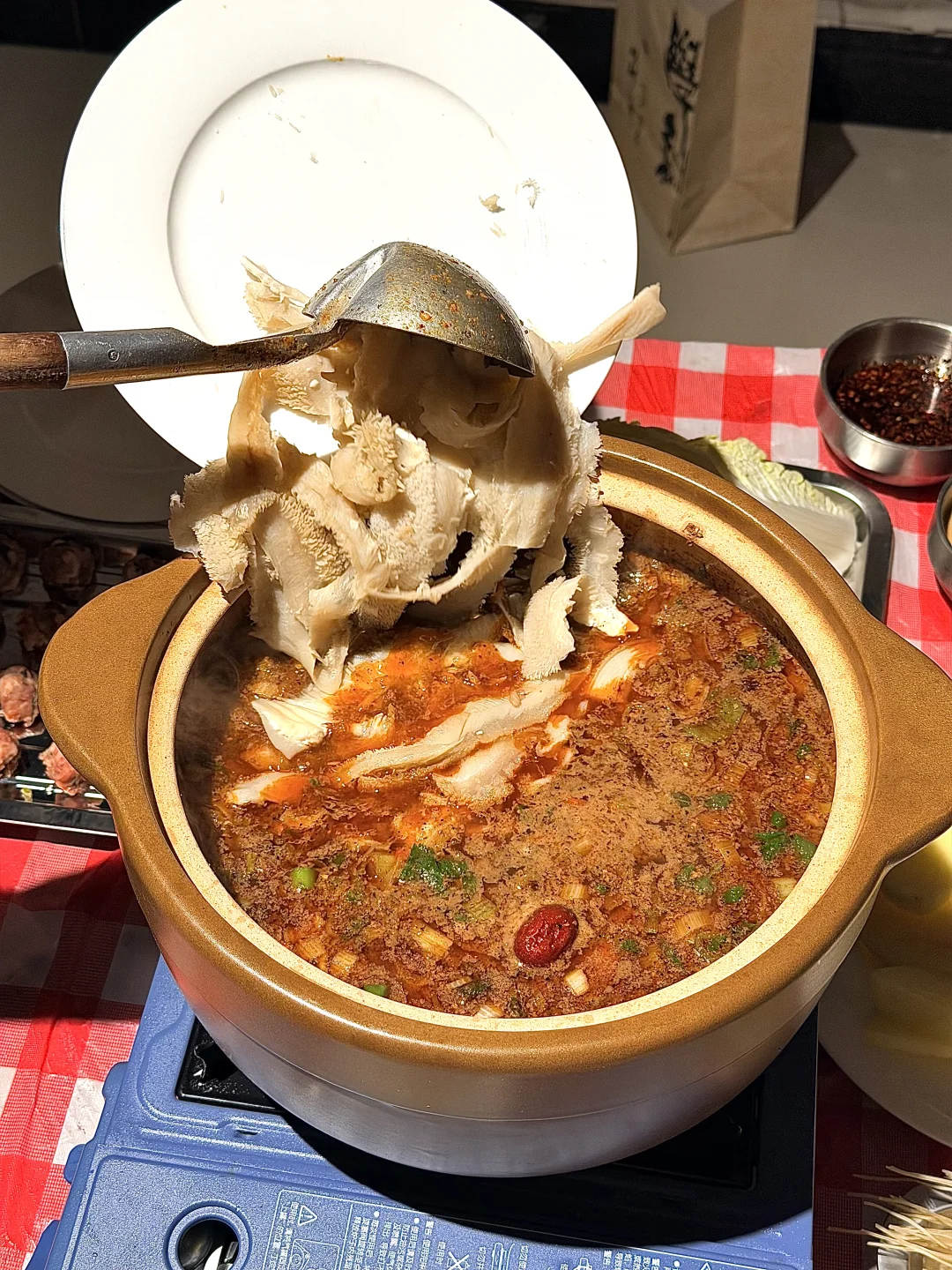 ⌛️最近就喜欢找一些偏僻小众的店 闺蜜开了很久车 把我带进了一个毫无任何装修的大院 这要不是亲闺蜜我真感觉自己被骗了 ✍️原来是一家老幼儿园改的! 屋子中间生着老式的炉子 煮着一大锅牛骨汤 你别说 真有种怀旧的感觉 他家的锅底全日照仅此一家 不是重油重辣 而是那种醇厚的香味,还带一点药材的回甘 不管涮牛肚、蔬菜还是面条 放进这个密制锅底捞出来 都挂满浓香 根本不用蘸料! 牛肉大饼也是喷香 饼皮软软的 肉量很扎实 吃完饭我又打包了一份带走~