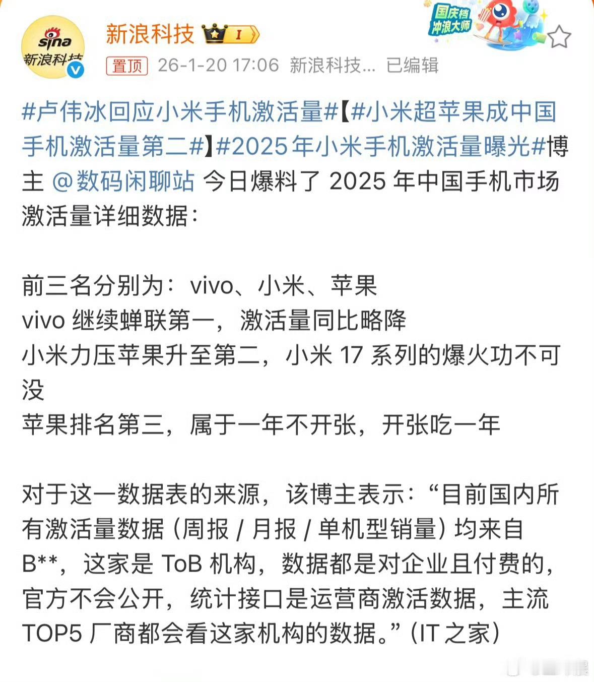小米超苹果成中国手机激活量第二 一边小米超苹果成中国手机激活量第二。另一边小米股