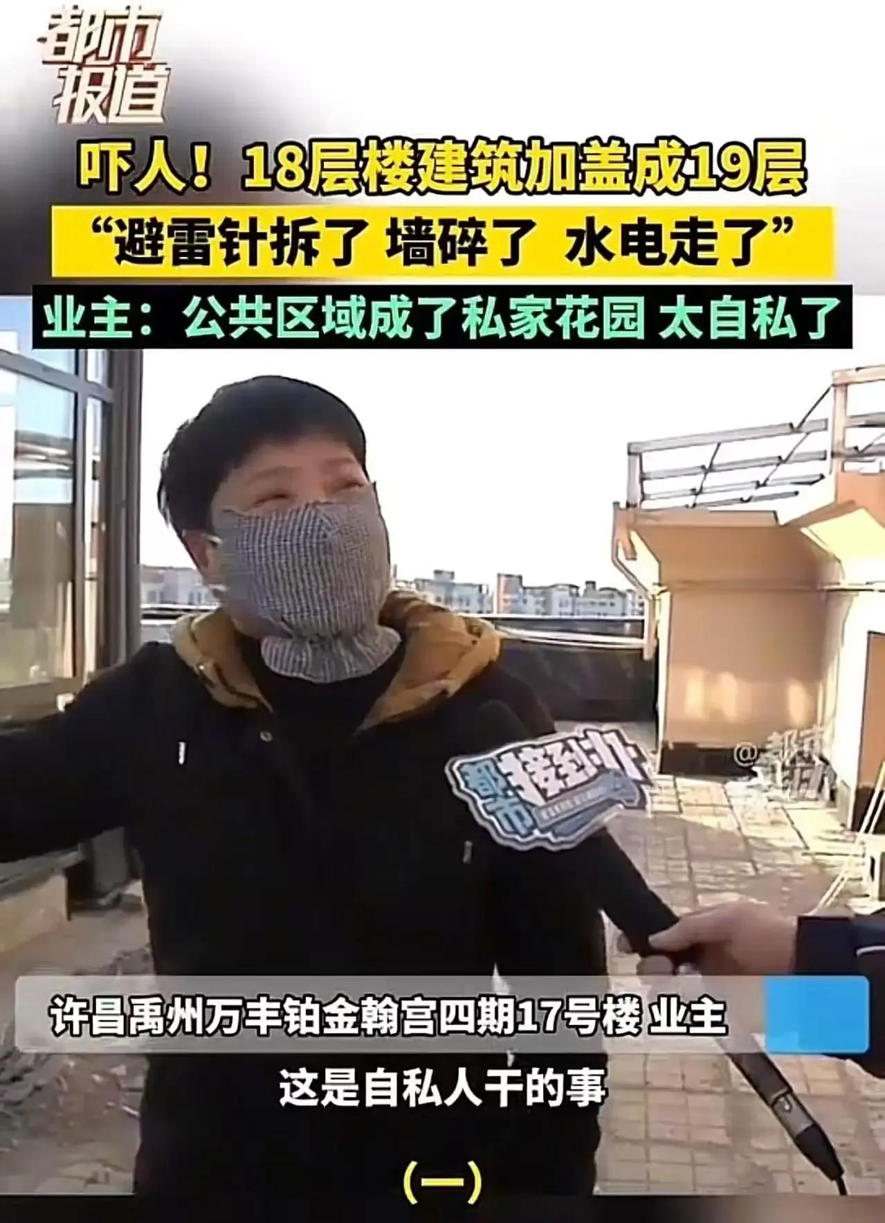 吓人!顶层业主私盖阳光房icon,把18层楼建筑加盖成19层!邻居:“避雷针拆了