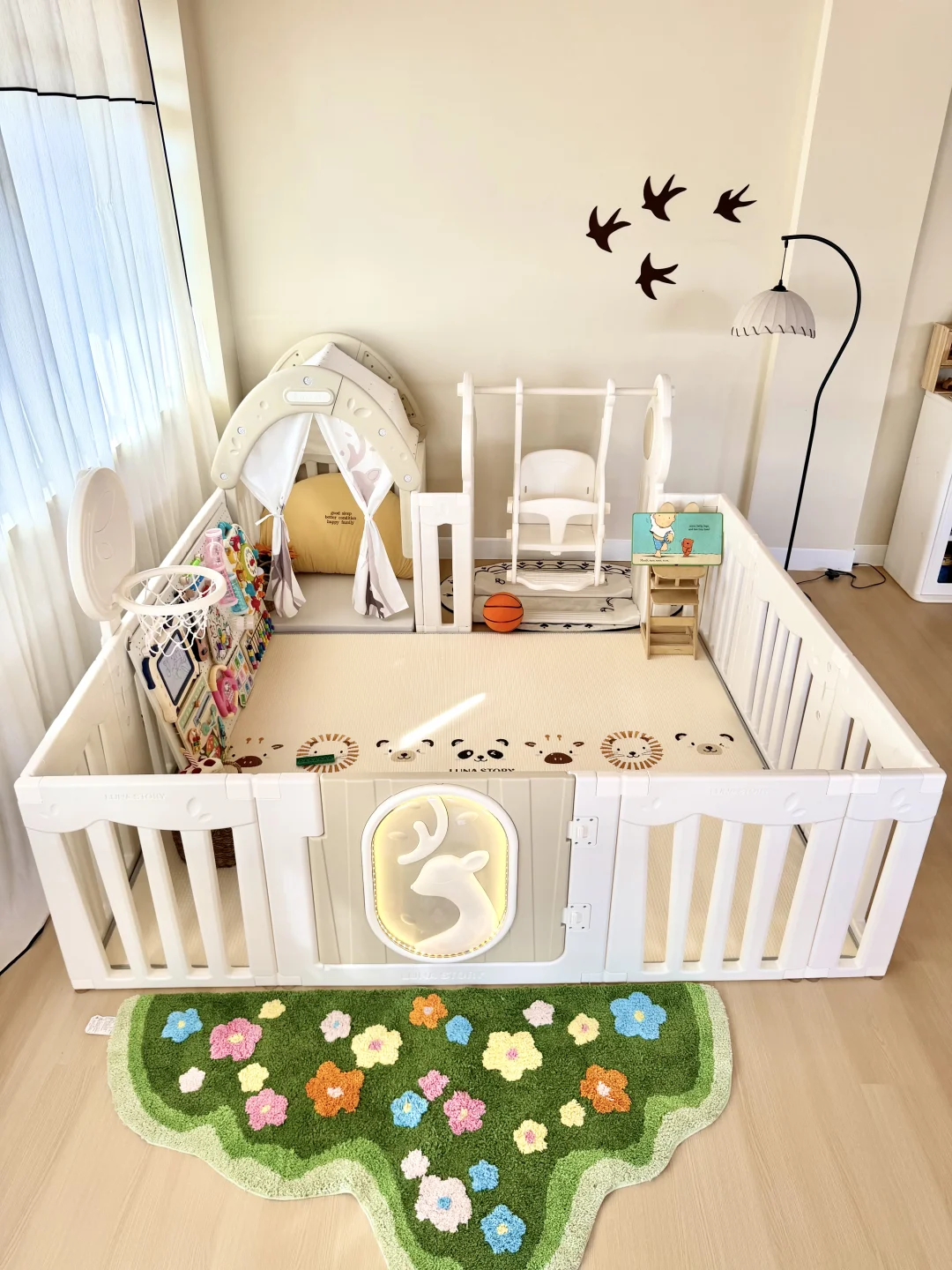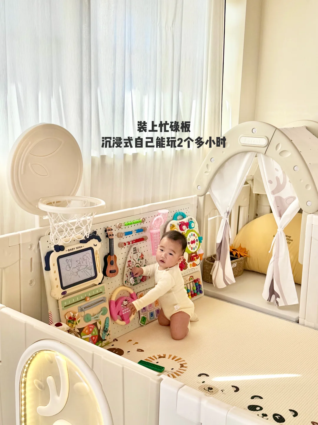 之前带娃游泳一次大几十💸钱包在滴血 在家洗澡又怕娃滑倒哭闹…老母亲愁到脱发😩 直到把lunastory围栏DIY成专属泳池🏊♀️ 小区长辈见了都问链接! 娃戴着脖圈在里面扑腾超开心✨ 再也不用大老远跑游泳馆 省下来的钱买奶粉不香吗🤭 材质必须夸!HDPE的完全没异味 加上几块板子直接变成围栏游乐园,自带秋千,篮球架,秘密基地,一整个实用住了!底部吸盘牢牢吸住地板,娃怎么摇都不晃💪 安全感直接拉满~ 有娃家庭快抄作业! 省钱又省心的带娃小妙招 早用早享受👏