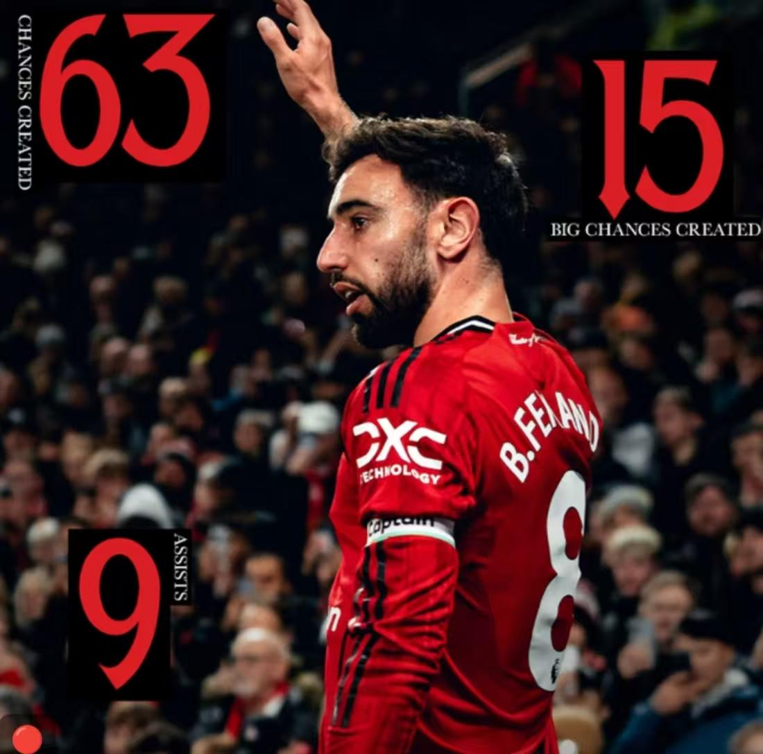 虎扑01月21日讯曼联官方发布数据海报,队长布鲁诺-费尔南德斯以多项创造机会的核心数据,成为本赛季英超联赛的“创造之王”。