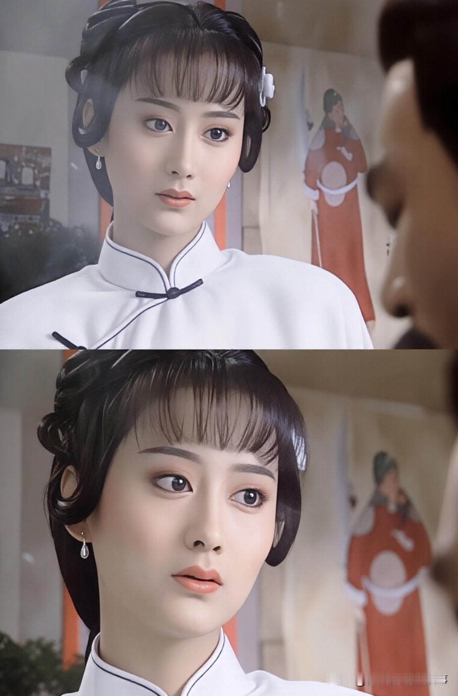 陈德容的白吟霜,不得不说她太适配素色造型,一袭白衣的白吟霜出场瞬间直接惊为天人,这份美貌用天仙下凡形容都不够,狐狸转世的美大抵也就这般模样,浓颜系的她演起清新小白花,却美出了超凡脱俗的质感,像极了故事里来报恩的白狐,美得极具冲击力,也瞬间让人共情男主的一见钟情,可怜小白花的身份配上这我见犹怜的模样,楚楚可怜的代名词非她莫属! 不得不说琼瑶这个时期的妆造真的一绝,新月格格、婉君、雪珂的造型放到现在依旧绝美难以超越,白吟霜的妆造更是把陈德容的颜值发挥到了极致,正值颜值巅峰的她遇上这份妆造巅峰,才成就了这般不可复刻的经典。这个造型太懂扬长避短了,刘海搭配鬓角的垂髻完美修饰了她太阳穴内陷的骨相缺点,让所有人的注意力都聚焦在她灵动美丽的眼睛上,素白的衣装更是为这份美添了几分清冷脱俗。 当然美人也并非完美,她的嘴巴细看会觉得有点奇怪,但这丝毫不影响整体的美,反倒让这份惊艳多了几分接地气,毕竟太完美的模样只属于仙女,瑕不掩瑜才更让人记挂。反观她后来在第三部里的杜芊芊,颜值和妆造都远不及白吟霜,也能看出选对造型对美人来说有多重要。 白吟霜的美,是角色、妆造与演员颜值巅峰的完美契合,至今再看依旧被狠狠惊艳。你心中陈德容的颜值妆造巅峰,是不是也非白吟霜莫属?