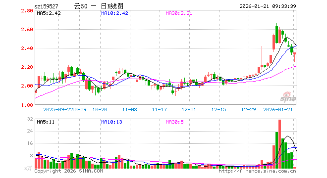 1月21日,云计算ETF广发(159527)开盘跌0.81%,报2.329元。云计算ETF广发(159527)重仓股方面,中际旭创开盘涨0.21%,新易盛涨0.12%,科大讯飞跌1.02%,中科曙光跌0.63%,浪潮信息跌0.71%,金山办公跌0.30%,紫光股份跌1.94%,恒生电子跌0.62%,润和软件跌0.83%,拓维信息跌0.78%。