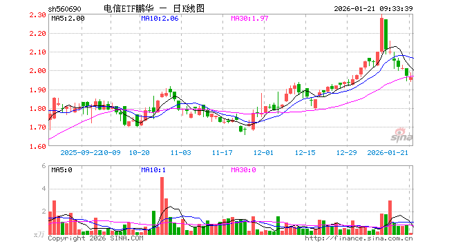 1月21日,电信ETF鹏华(560690)开盘跌1.22%,报1.947元。电信ETF鹏华(560690)重仓股方面,中际旭创开盘涨0.21%,新易盛涨0.12%,中国联通跌0.19%,中国移动跌0.23%,中国电信跌0.17%,银之杰跌1.13%,中国卫通跌2.68%,中兴通讯跌0.98%,天孚通信跌0.41%,紫光股份跌1.94%。