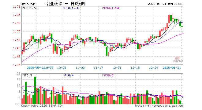 1月21日,创业板综ETF万家(159541)开盘涨0.00%,报1.580元。创业板综ETF万家(159541)重仓股方面,宁德时代开盘涨0.67%,中际旭创涨0.21%,东方财富跌0.04%,新易盛涨0.12%,迈瑞医疗跌0.05%,阳光电源涨0.06%,胜宏科技跌0.24%,汇川技术跌0.29%,蓝思科技跌1.12%,亿纬锂能跌0.50%。