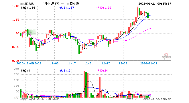 1月21日,创业板综ETF银华(159288)开盘跌0.76%,报1.047元。创业板综ETF银华(159288)重仓股方面,宁德时代开盘涨0.67%,中际旭创涨0.21%,东方财富跌0.04%,迈瑞医疗跌0.05%,新易盛涨0.12%,胜宏科技跌0.24%,阳光电源涨0.06%,温氏股份涨0.25%,汇川技术跌0.29%,蓝思科技跌1.12%。