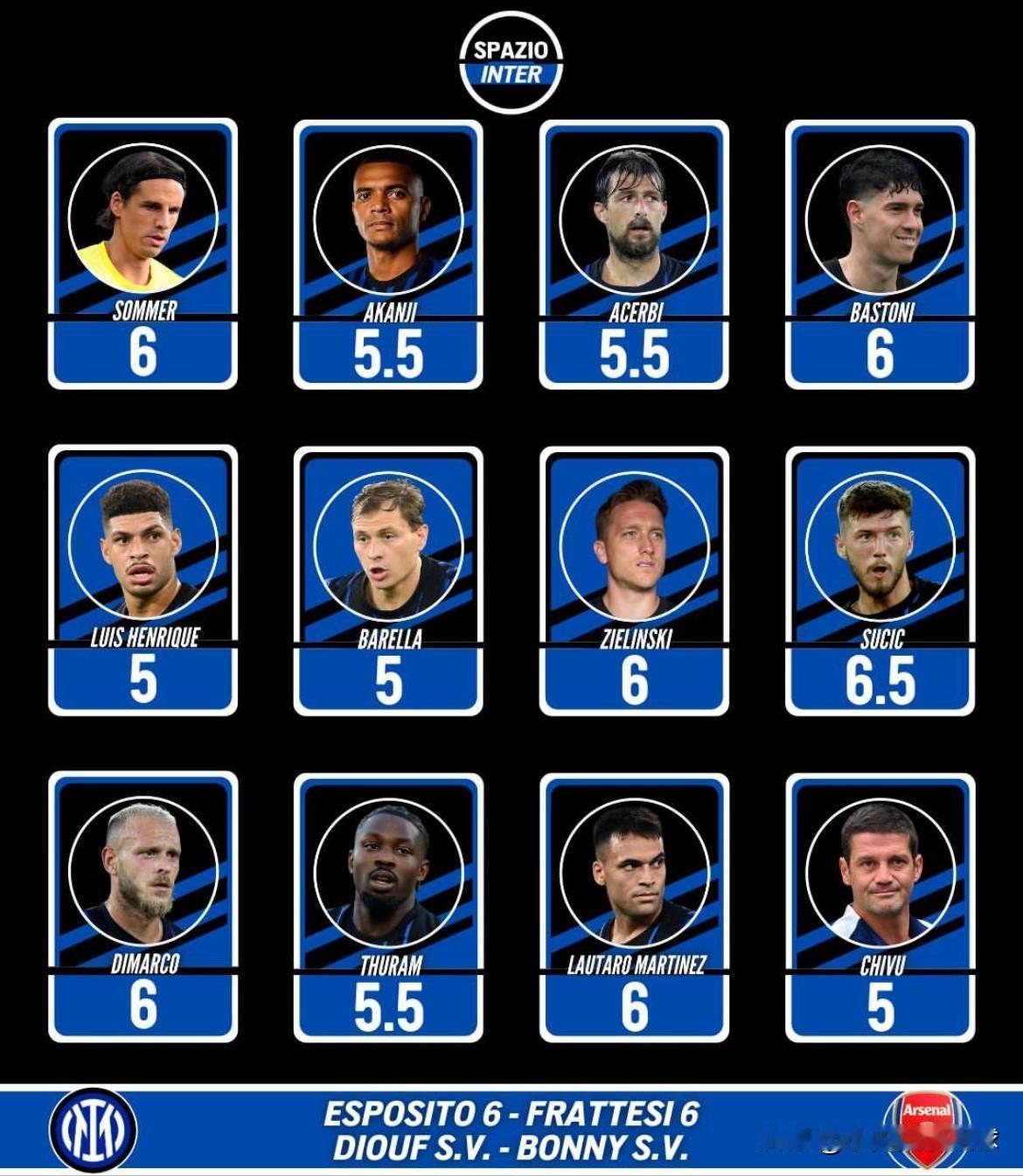 陌生,不及格!国米空间:蓝黑军团1比3不敌阿森纳,赛后评分! 打入全队唯一进球的