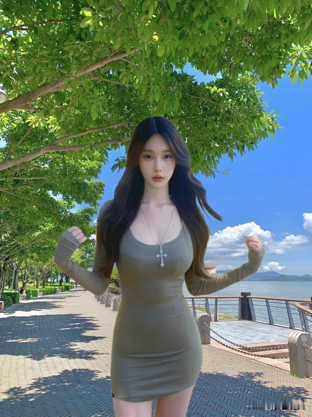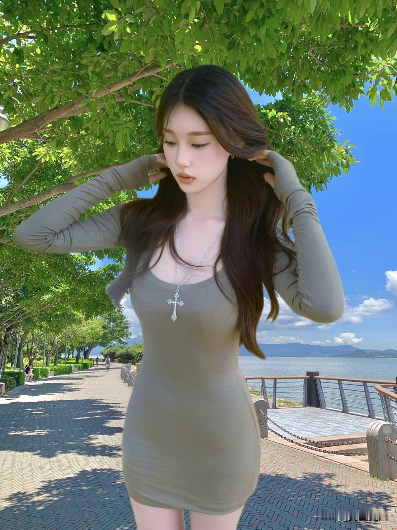 阳光明媚的海边漫步,时尚连衣裙搭配清新自然。