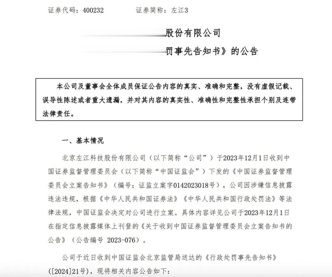 2024年12月,公司公告称,收到中国证监会北京监管局送达的《行政处罚事先告知书》。