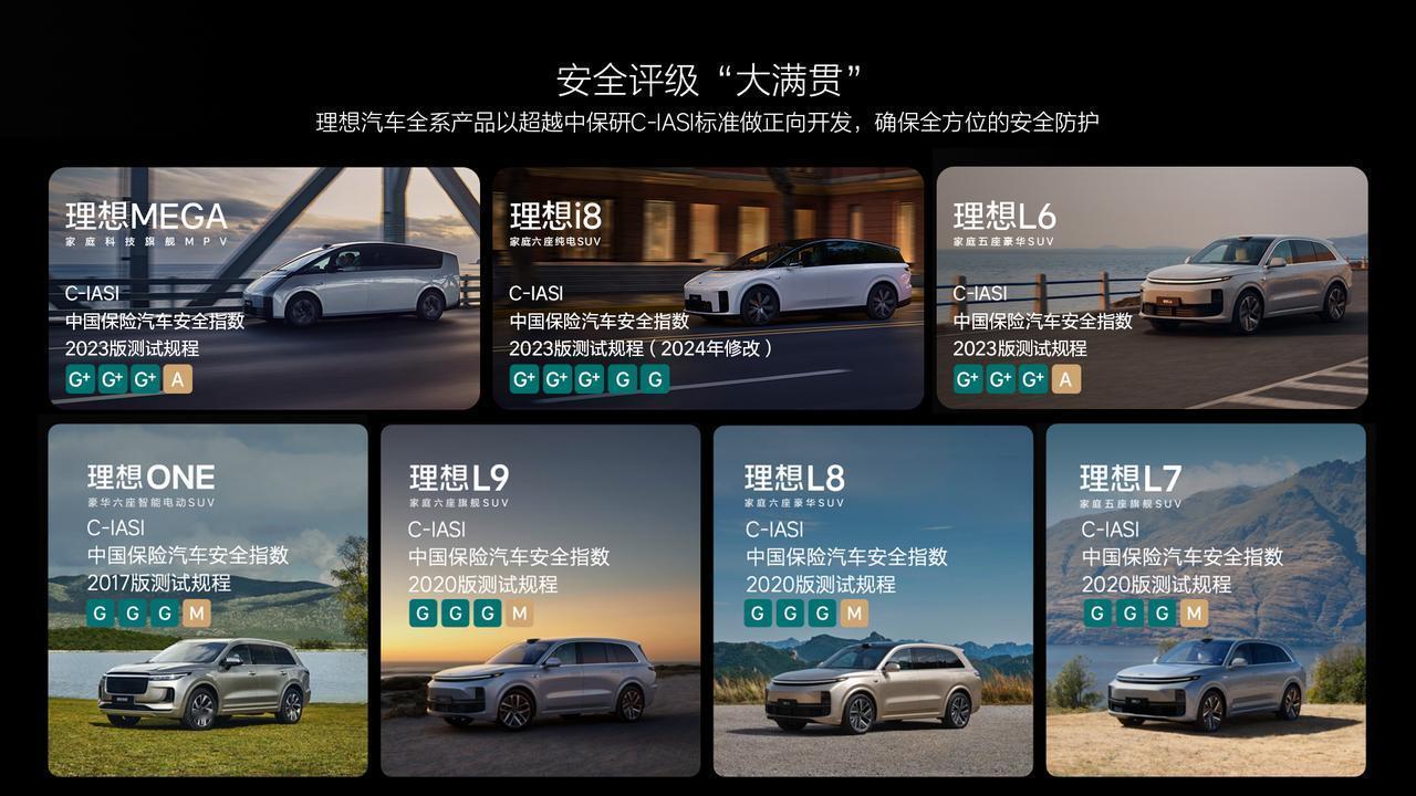 今天中保研公示了最新一批测试车型的测试结果,理想i8获得了新能源专项最高评级,也获得了新能源安全性测评满分!在车辆结构安全方面,理想i8 采用堡垒车身设计,全车高强度钢和铝合金占比高达84.7%,车头采用了13环吸能设计,如此多的用料也直接反映到测试成绩上,主副驾侧均轻松通过25%小偏置碰撞,短车头也可以做到乘员舱非常安全!其他安全性测试也都不在话下,轻松拿下最优评级!理想i8的电池安全防护也做得十分到位,采用环抱式骨架结构、七条高强度横梁、做到电池0入侵,正是有如此多的安全设计,理想i8也拿到了新能源专项指数中的最好成绩!虽然拿下好的安全测试成绩是理想的一贯传统(之前的所有理想车型在碰撞安全度方面一直是最高评级G或G+),但看了测试成绩我还发现,理想i8进步了,拿到了三个G+和两个G的优异成绩,碰撞性与维修经济性指数也拿到了G!理想汽车理想i8中保研
